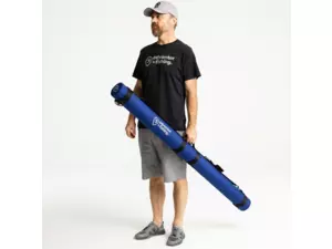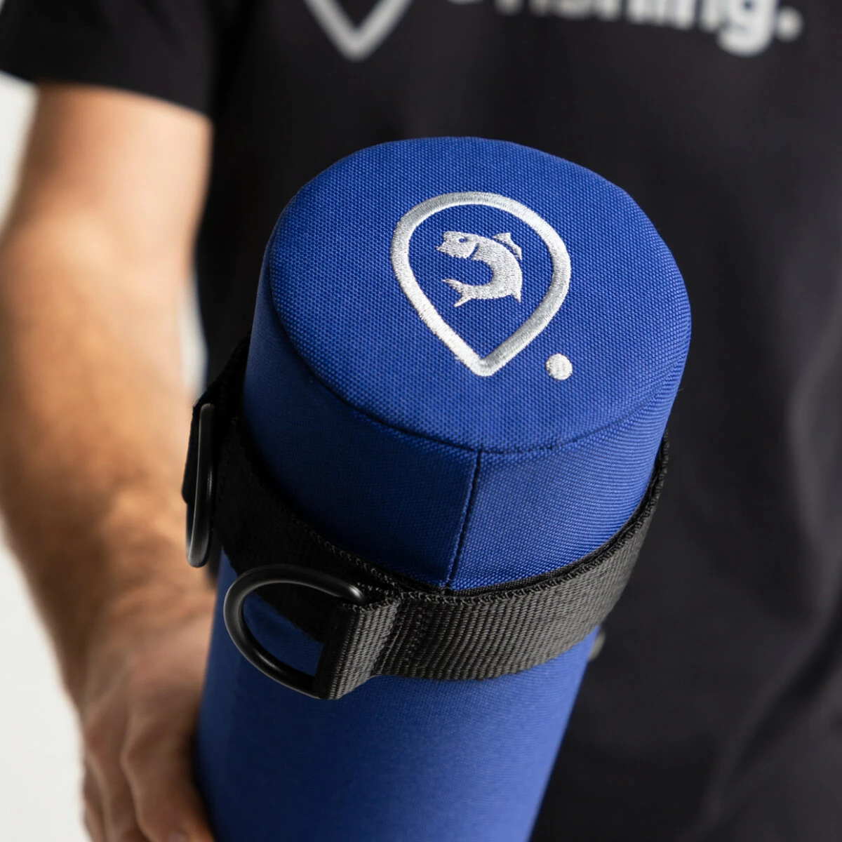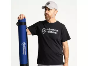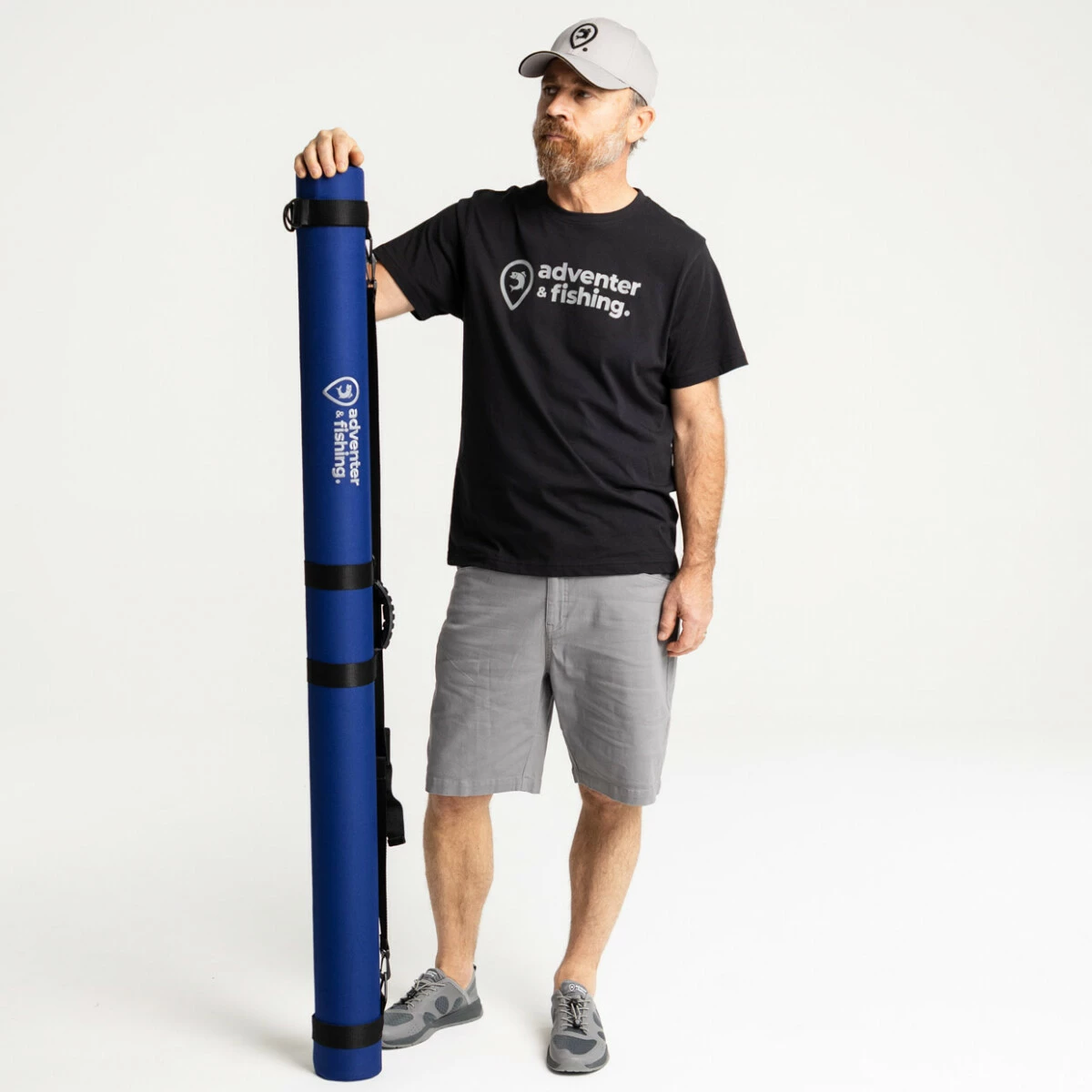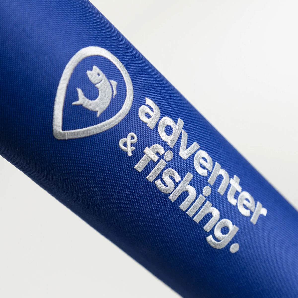 Třívrstvý obal na pruty v modré barvě Blue s bílým vyšívaným logem Adventer & fishing. Polypropylenový tubus je odolný proti vodě, nárazu i teplotám. Má nastavitelný popruh a možnost uzamčení na visací zámek. Obal lze personalizovat vlastním jménem a vlajkou.