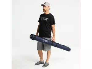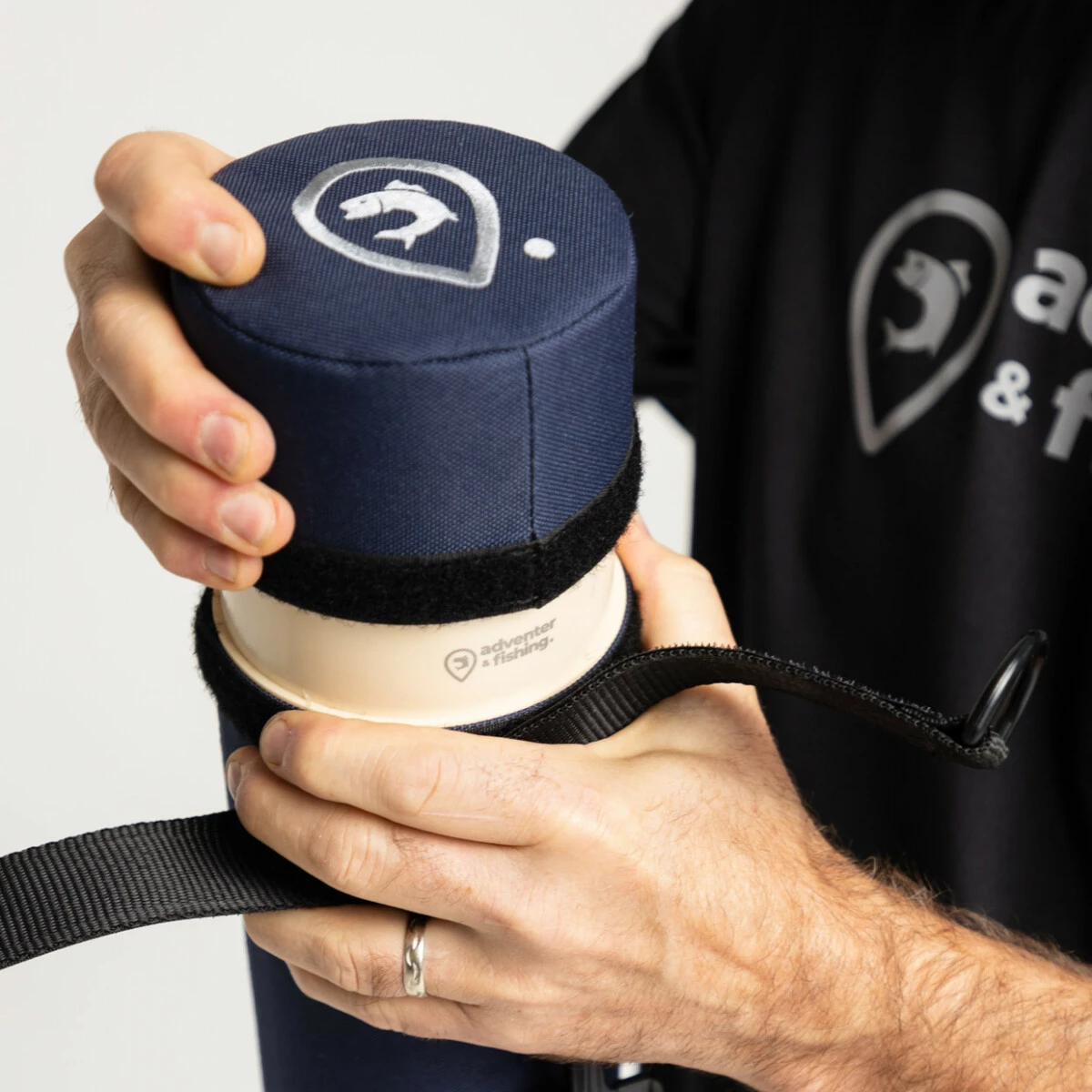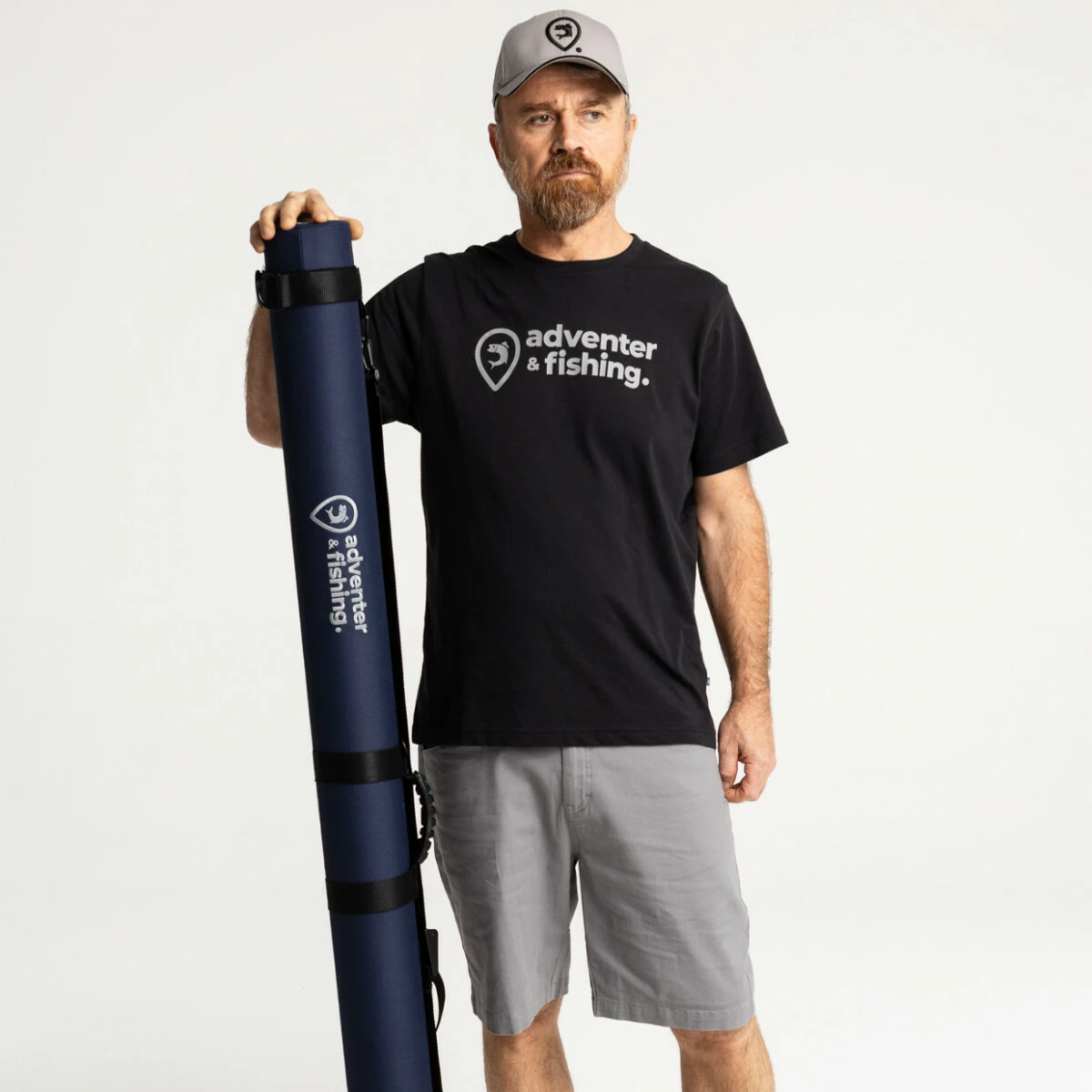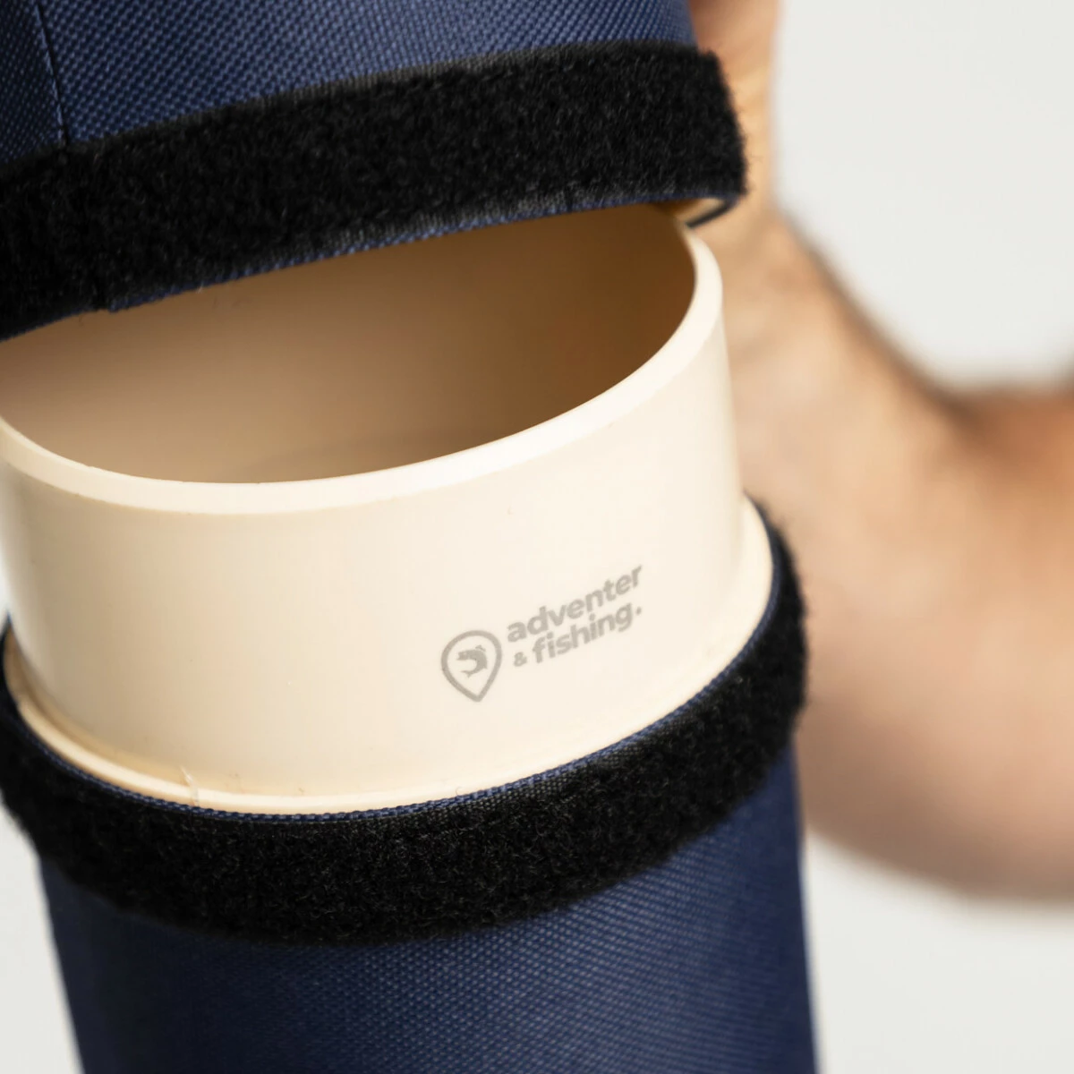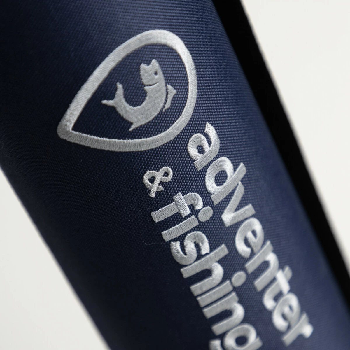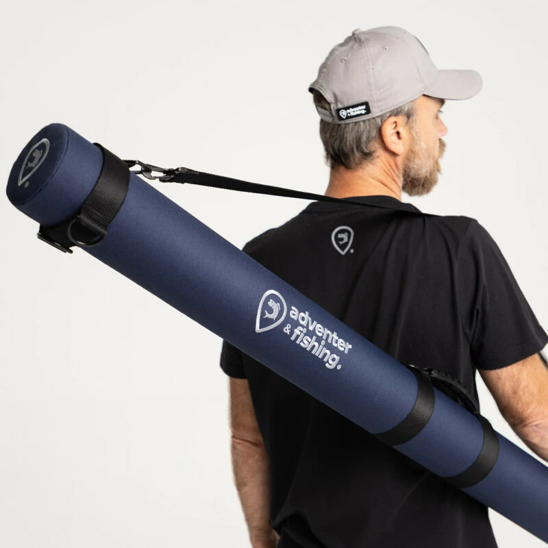 Třívrstvý obal na pruty v tmavomodré barvě Dark Blue s bílým vyšívaným logem Adventer & fishing. Polypropylenový tubus je odolný proti vodě, nárazu i teplotám. Má nastavitelný popruh a možnost uzamčení na visací zámek. Obal lze personalizovat vlastním jménem a vlajkou.