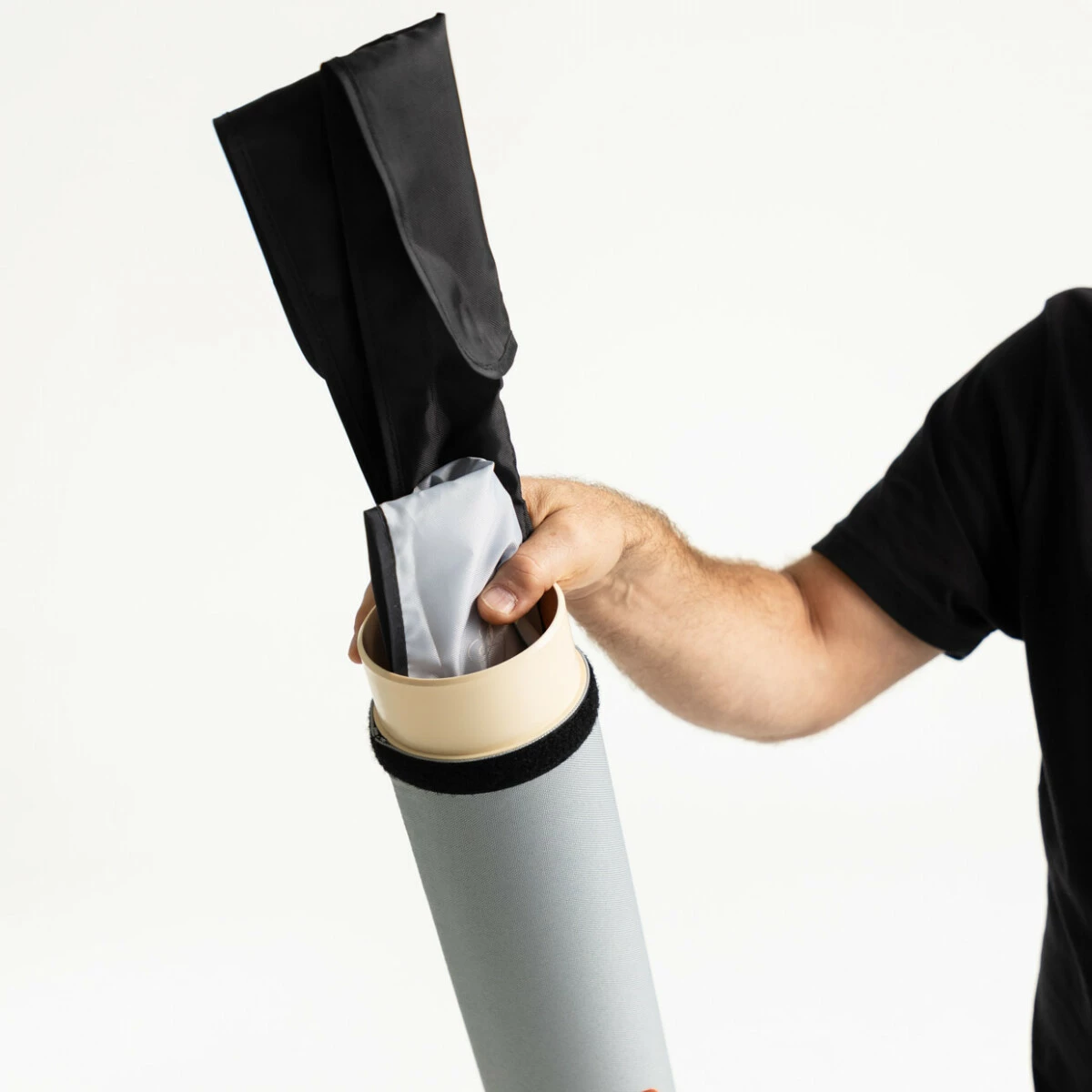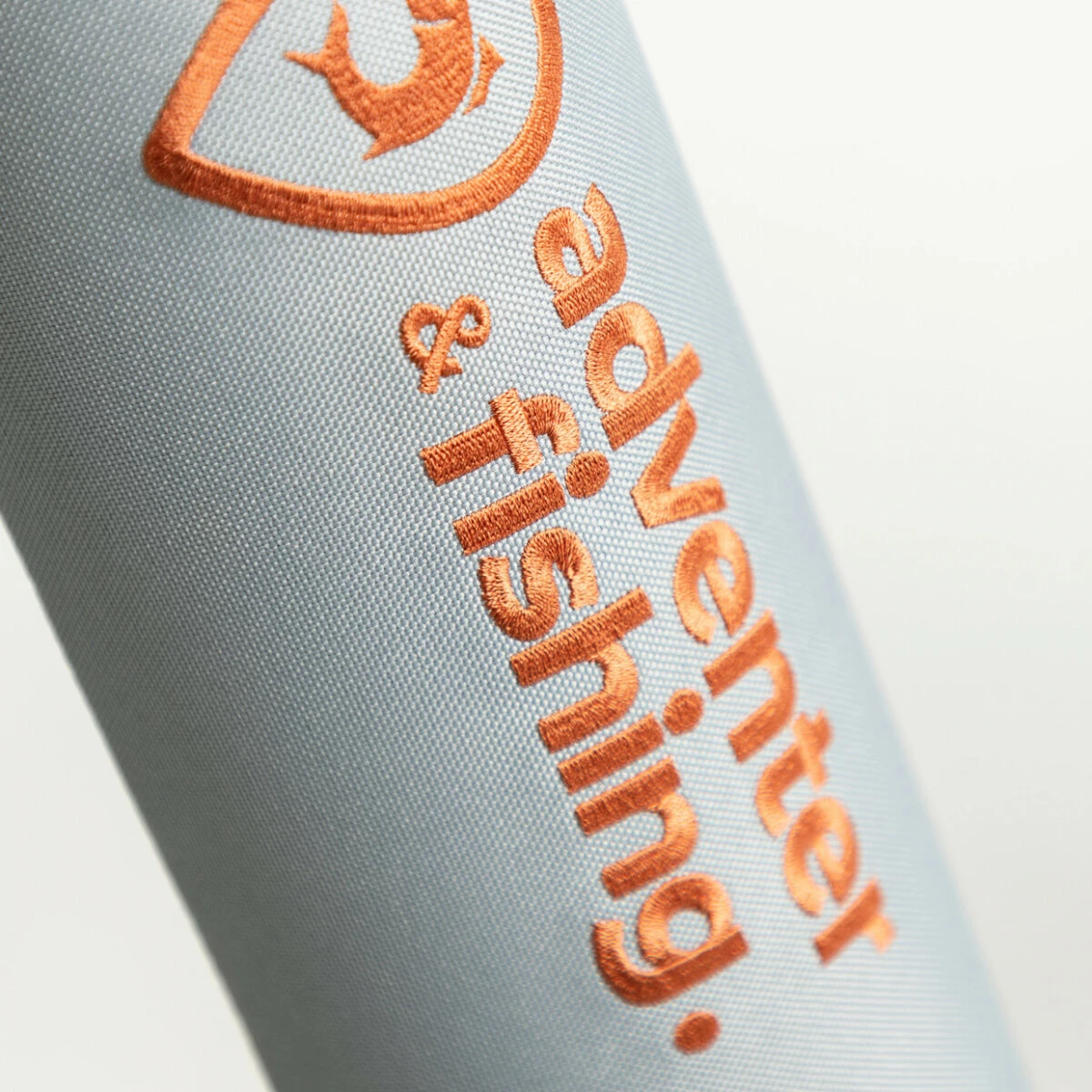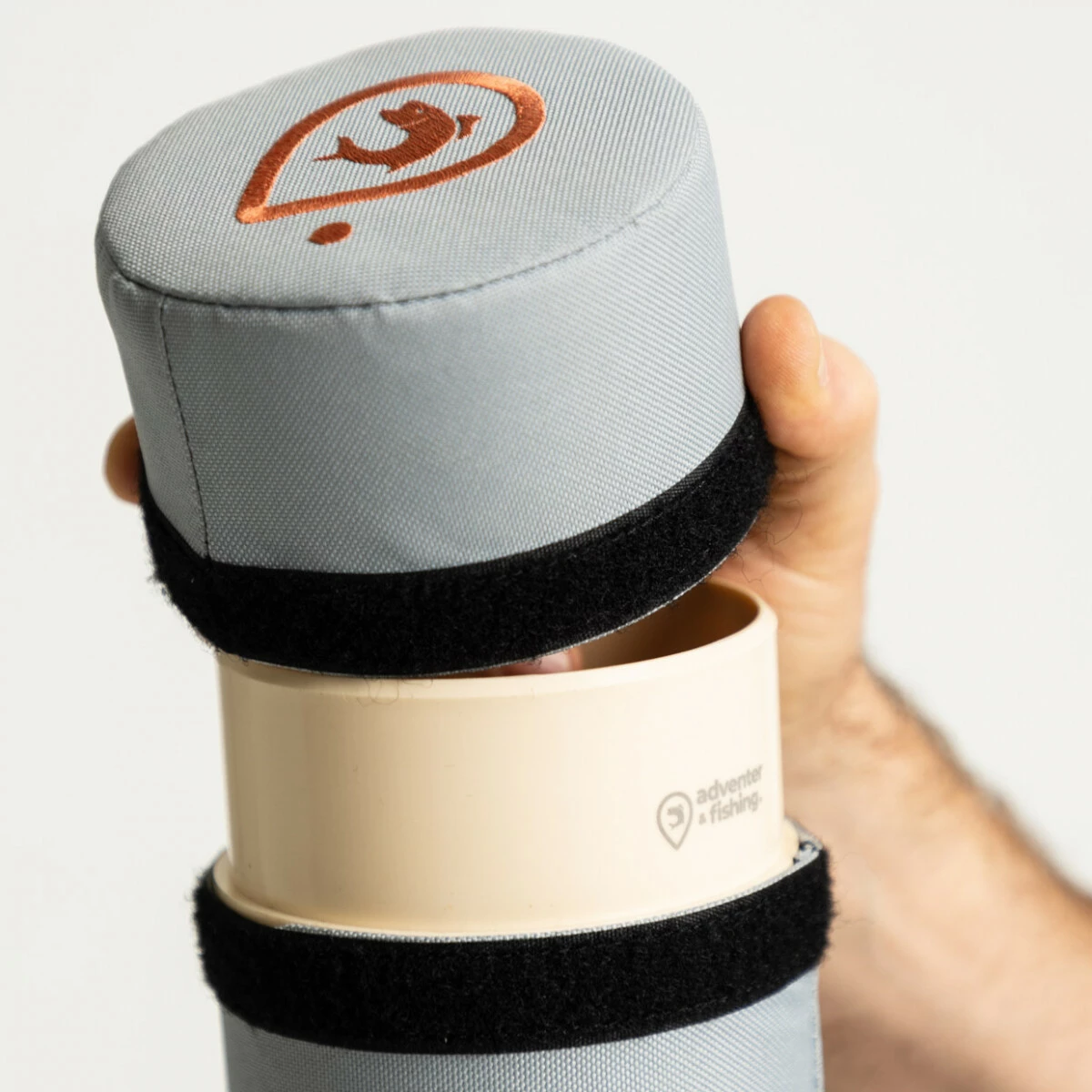 Třívrstvý obal na pruty v šedé barvě Grey s oranžovým vyšívaným logem Adventer & fishing. Polypropylenový tubus je odolný proti vodě, nárazu i teplotám. Má nastavitelný popruh a možnost uzamčení na visací zámek. Obal lze personalizovat vlastním jménem a vlajkou.