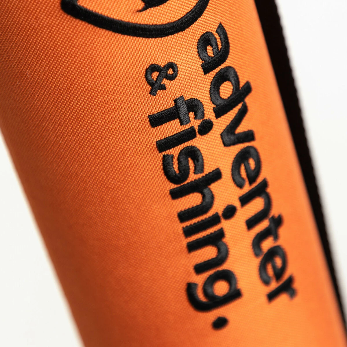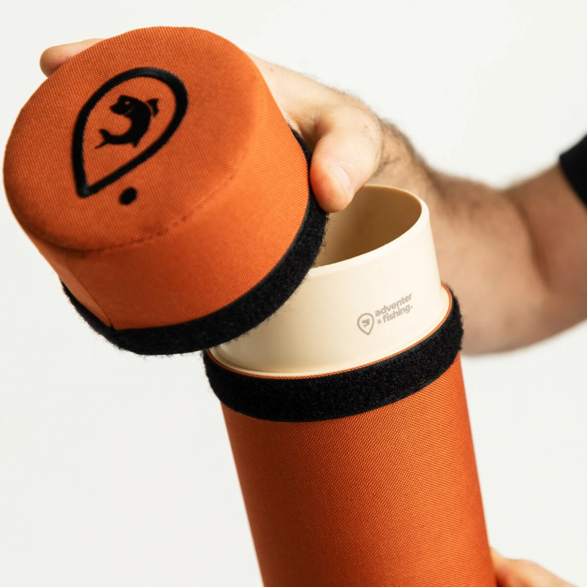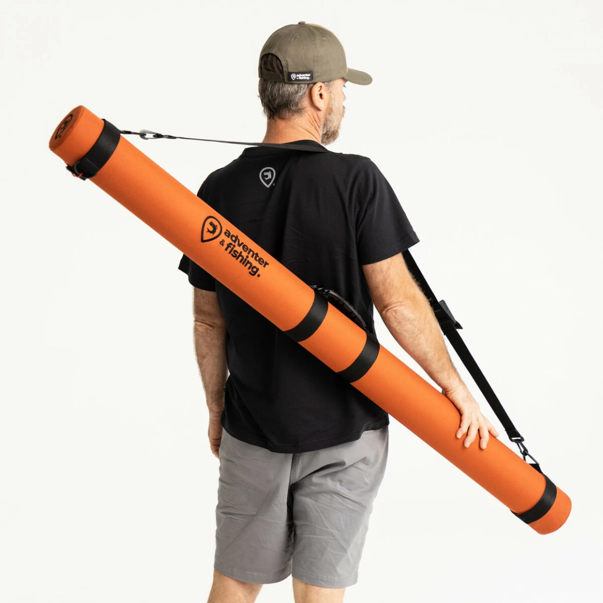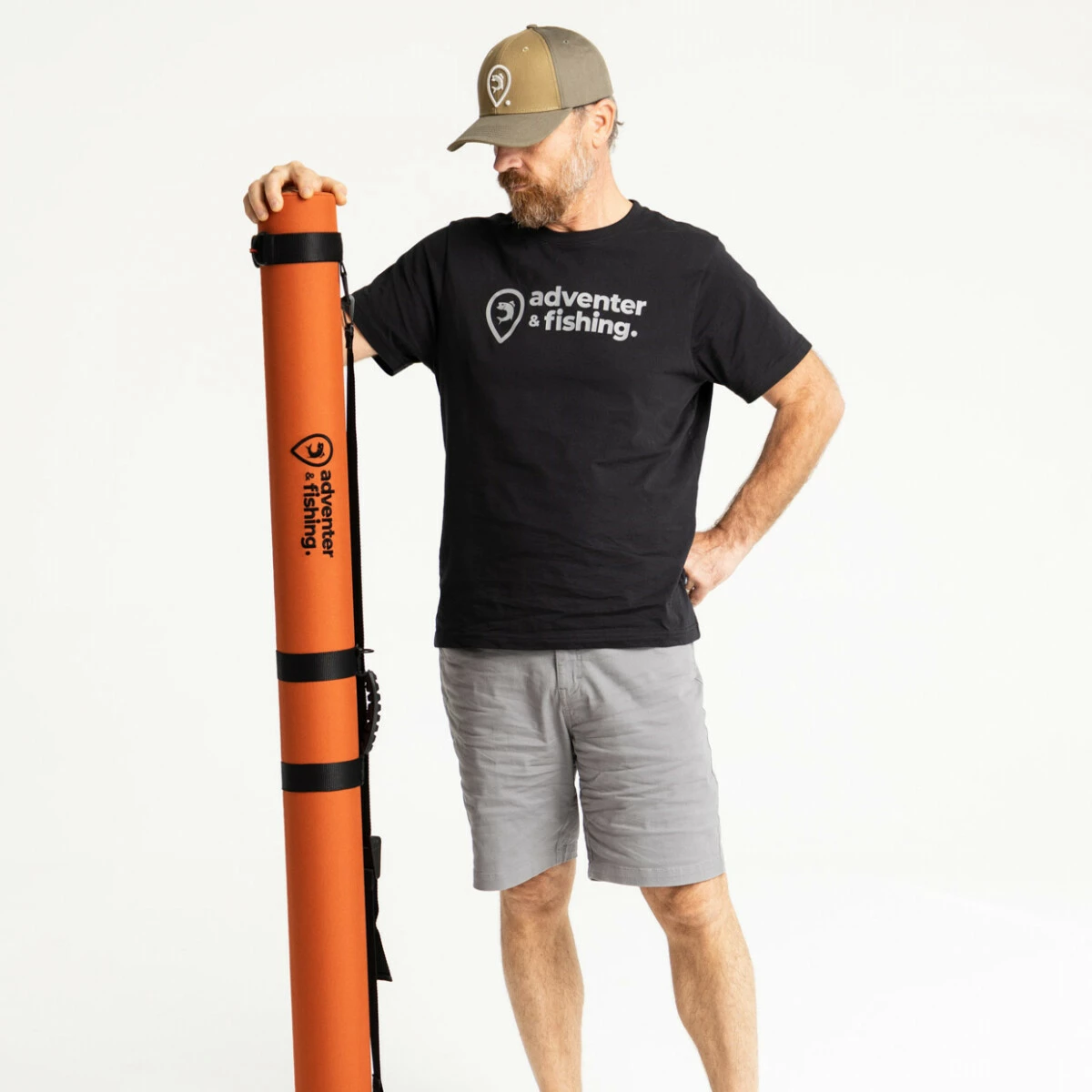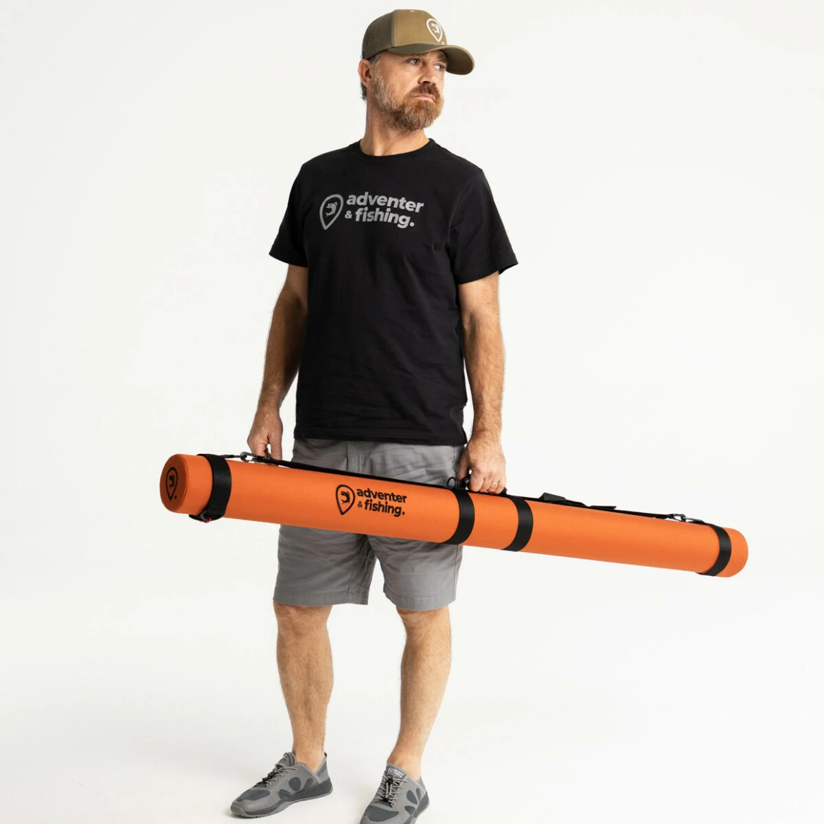Třívrstvý obal na pruty v oranžové barvě Orange s černým vyšívaným logem Adventer & fishing. Polypropylenový tubus je odolný proti vodě, nárazu i teplotám. Má nastavitelný popruh a možnost uzamčení na visací zámek. Obal lze personalizovat vlastním jménem a vlajkou.