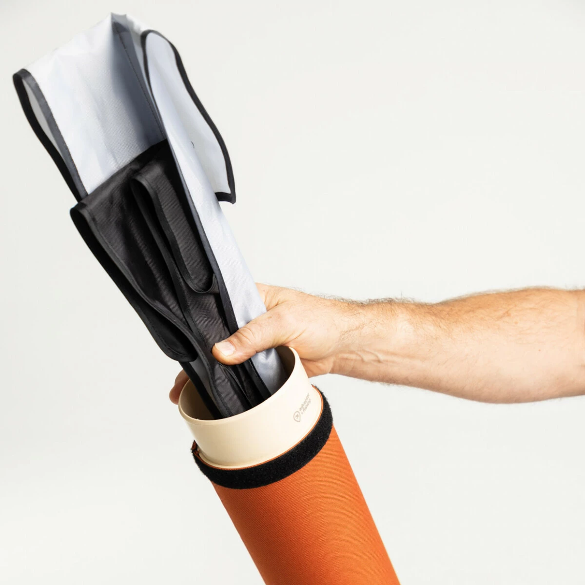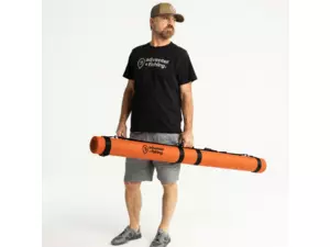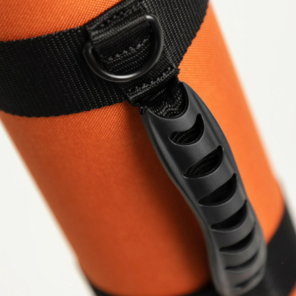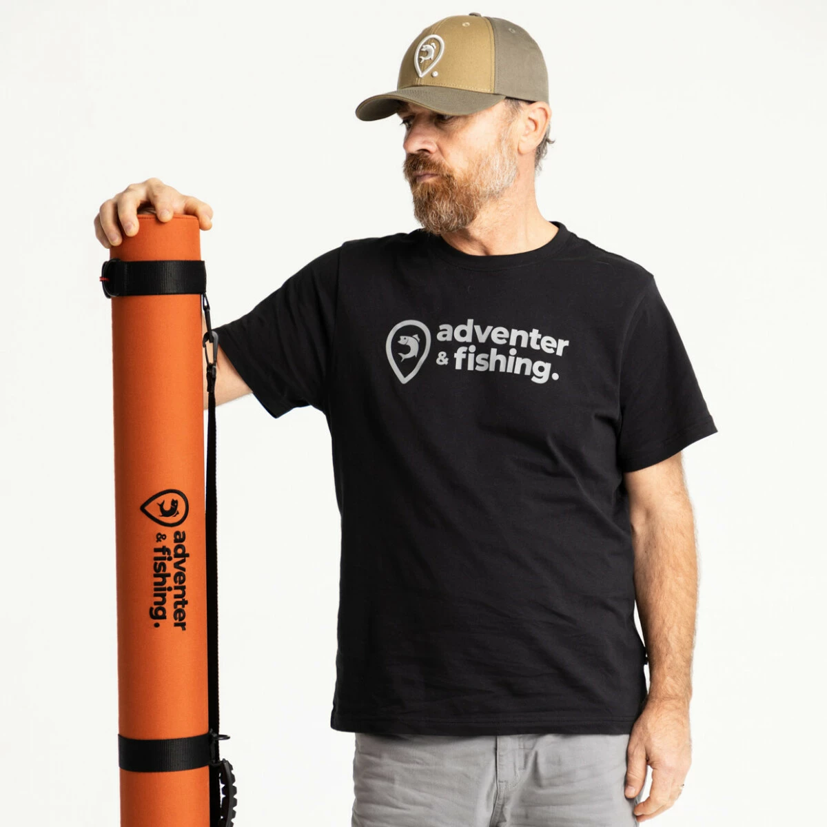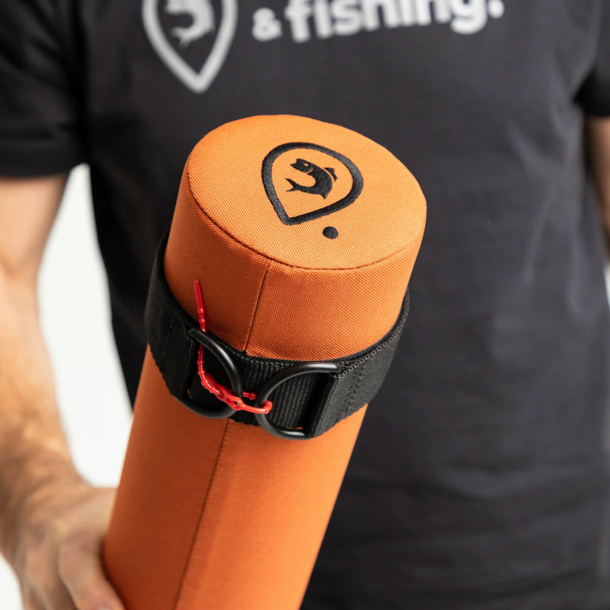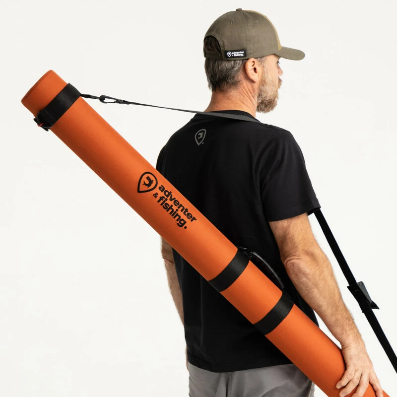 Třívrstvý obal na pruty v oranžové barvě Orange s černým vyšívaným logem Adventer & fishing. Polypropylenový tubus je odolný proti vodě, nárazu i teplotám. Má nastavitelný popruh a možnost uzamčení na visací zámek. Obal lze personalizovat vlastním jménem a vlajkou.