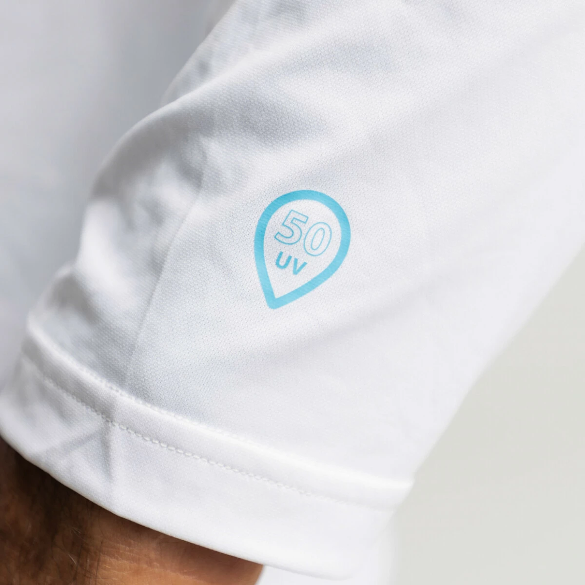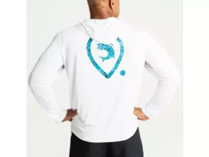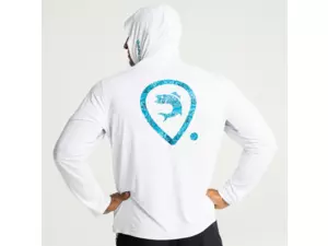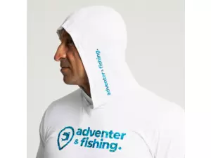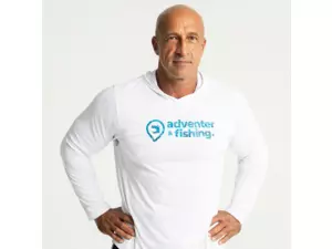 UV tričko s dlouhým rukávem a kapucí, v bílé barvě s motivem Bluefin Trevally (Kranas modroploutvý). Hoodie tričko je vyrobené z nejjemnějšího nylonu, jaký je na trhu k dostání. Chladivý materiál s UV filtrem UPF50+ je příjemný na těle a odvádí vlhkost. V místě podpaží je látka obohacená o ventilaci. Tričko představuje nejlepší ochranu proti slunečním paprskům, zejména během chytání na moři.