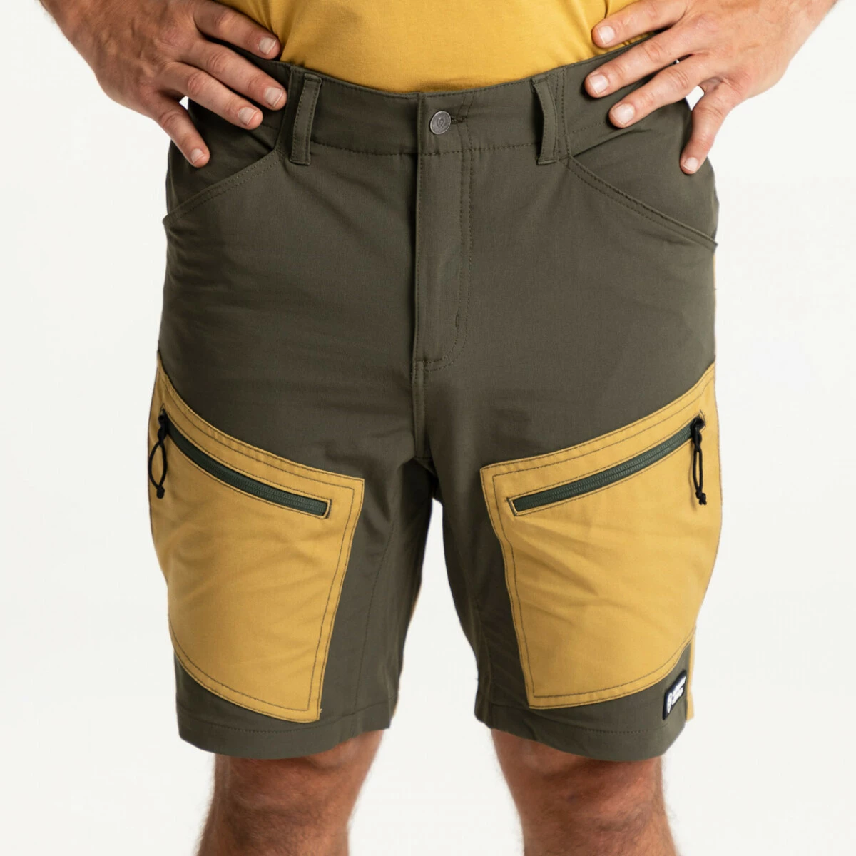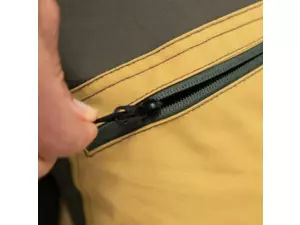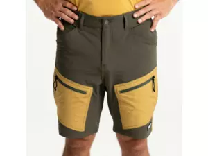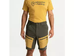 Pánské outdoorové kraťasy z impregnovaného, vodoodpudivého a větru vzdorného materiálu. Díky nim zůstanete déle v suchu i při nepříznivém počasí. Kalhoty mají čtyři kapsy, z toho dvě se zipem. Otvor pro pásek umožní upravit pas na požadovanou velikost. Jsou vybaveny celkem čtyřmi kapsami. Knoflík je ozdoben nápisem Adventer & fishing. Náhradní knoflík je součástí balení.