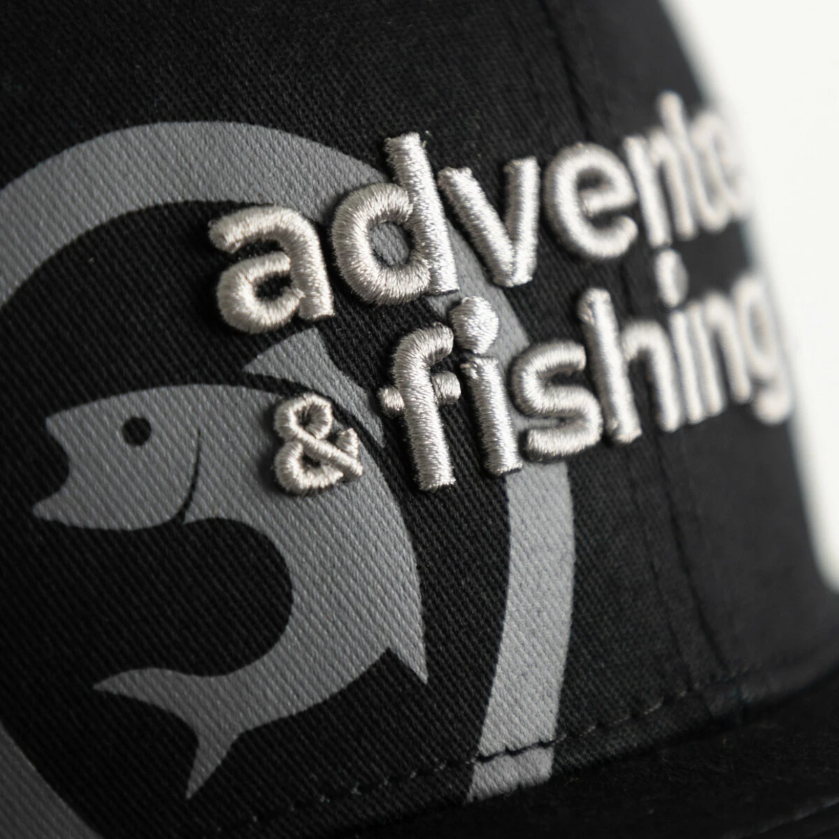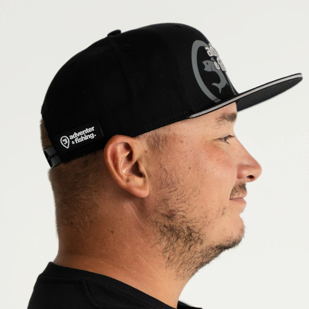Bavlněná unisex kšiltovka typu snapback s rovným kšiltem v černé barvě Black a vyšitým logem Adventer & fishing. Díky anatomickému tvaru a stahování v zadní části dobře sedí na hlavě. Kšiltovka má univerzální velikost.