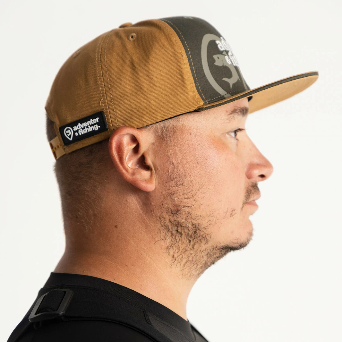 Bavlněná unisex kšiltovka typu snapback s rovným kšiltem v pískově hnědé barvě Sand & Khaki a vyšitým logem Adventer & fishing. Díky anatomickému tvaru a stahování v zadní části dobře sedí na hlavě. Kšiltovka má univerzální velikost.