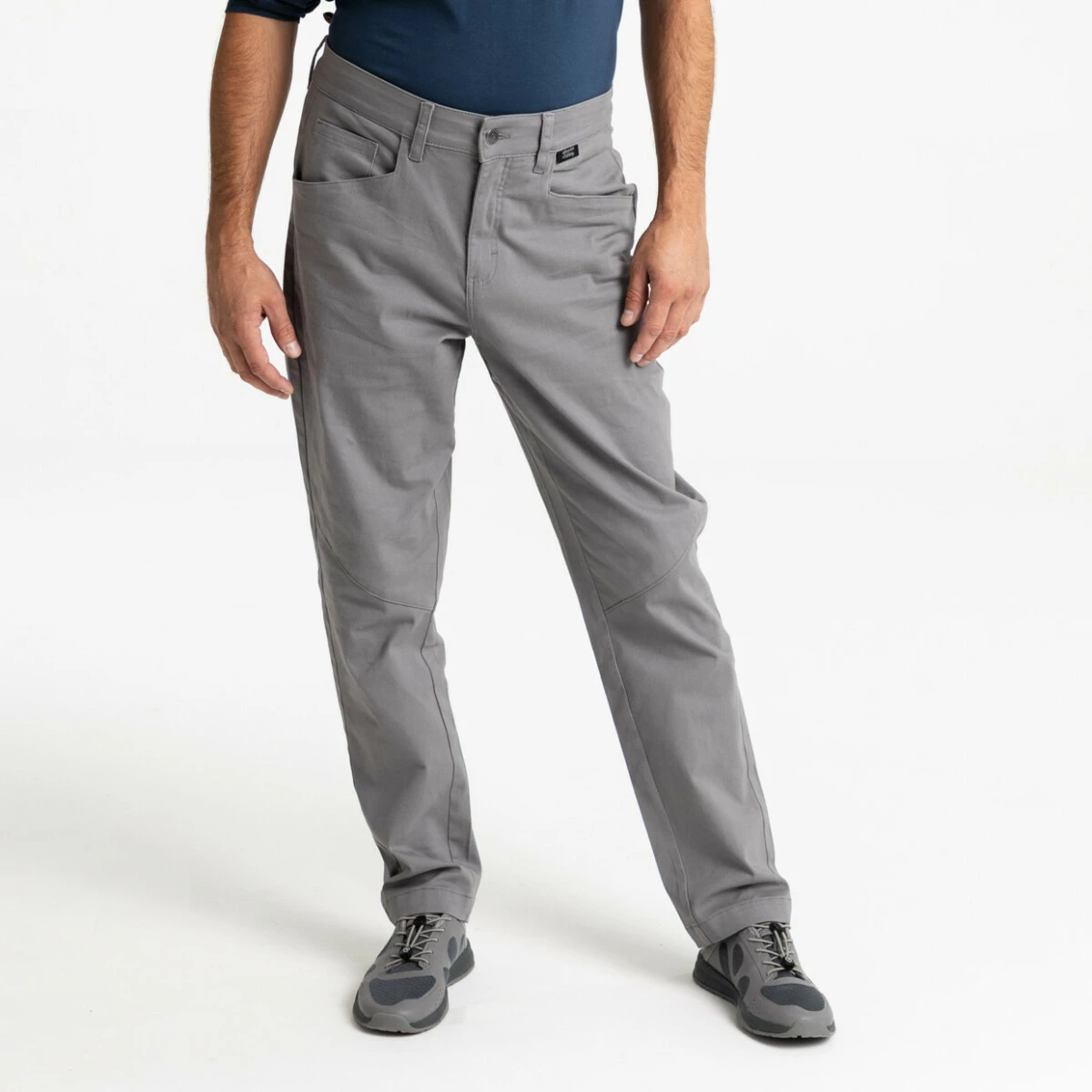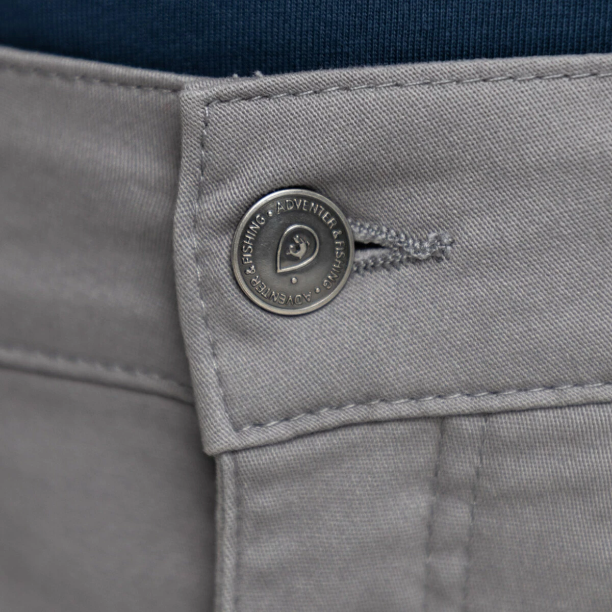 Pánské outdoorové kalhoty v šedé barvě Steel jsou prvotřídním výrobkem, který vám zajistí komfort v každém terénu a počasí. Jsou vyrobené z měkkého, jemného, poddajného a pružného materiálu, který zajistí neomezný pohyb, ať už jste na rybách nebo kdekoliv jinde. Otvor pro pásek umožní upravit pas na požadovanou velikost. Jsou vybaveny celkem čtyřmi kapsami, po dvou na přední a zadní straně kalhot. Knoflík je ozdoben nápisem Adventer & fishing. Náhradní knoflík je součástí balení.