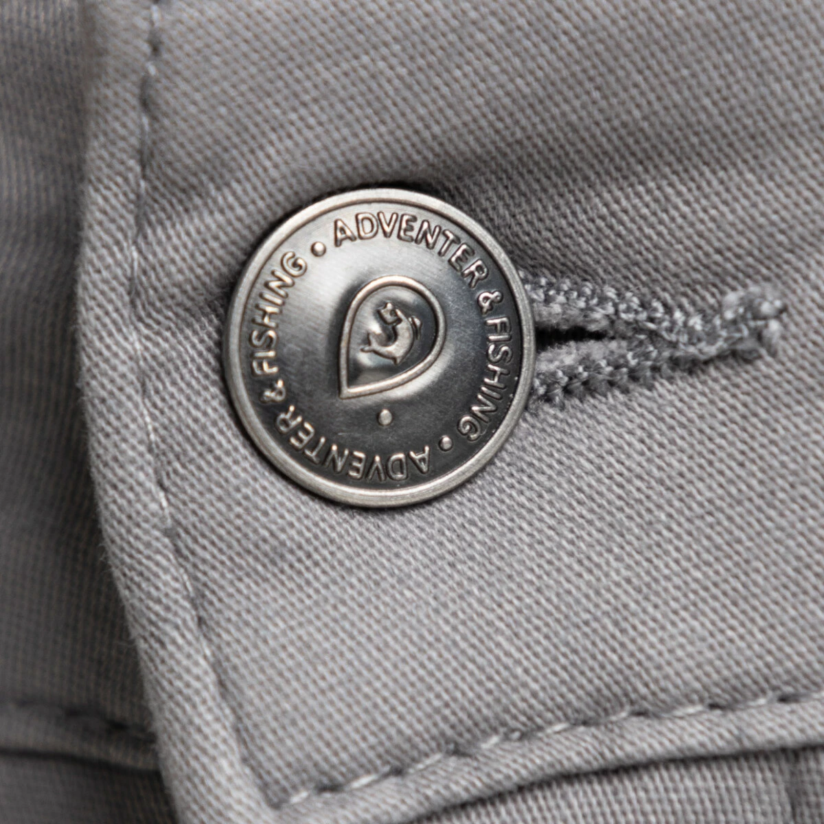 Pánské outdoorové kraťasy v šedé barvě Steel jsou prvotřídním výrobkem, který vám zajistí komfort v každém terénu a počasí. Jsou vyrobené z měkkého, jemného, poddajného a pružného materiálu, který zajistí neomezný pohyb, ať už jste na rybách nebo kdekoliv jinde. Otvor pro pásek umožní upravit pas na požadovanou velikost. Jsou vybaveny celkem čtyřmi kapsami, po dvou na přední a zadní straně šortek. Knoflík je ozdoben nápisem Adventer & fishing. Náhradní knoflík je součástí balení.