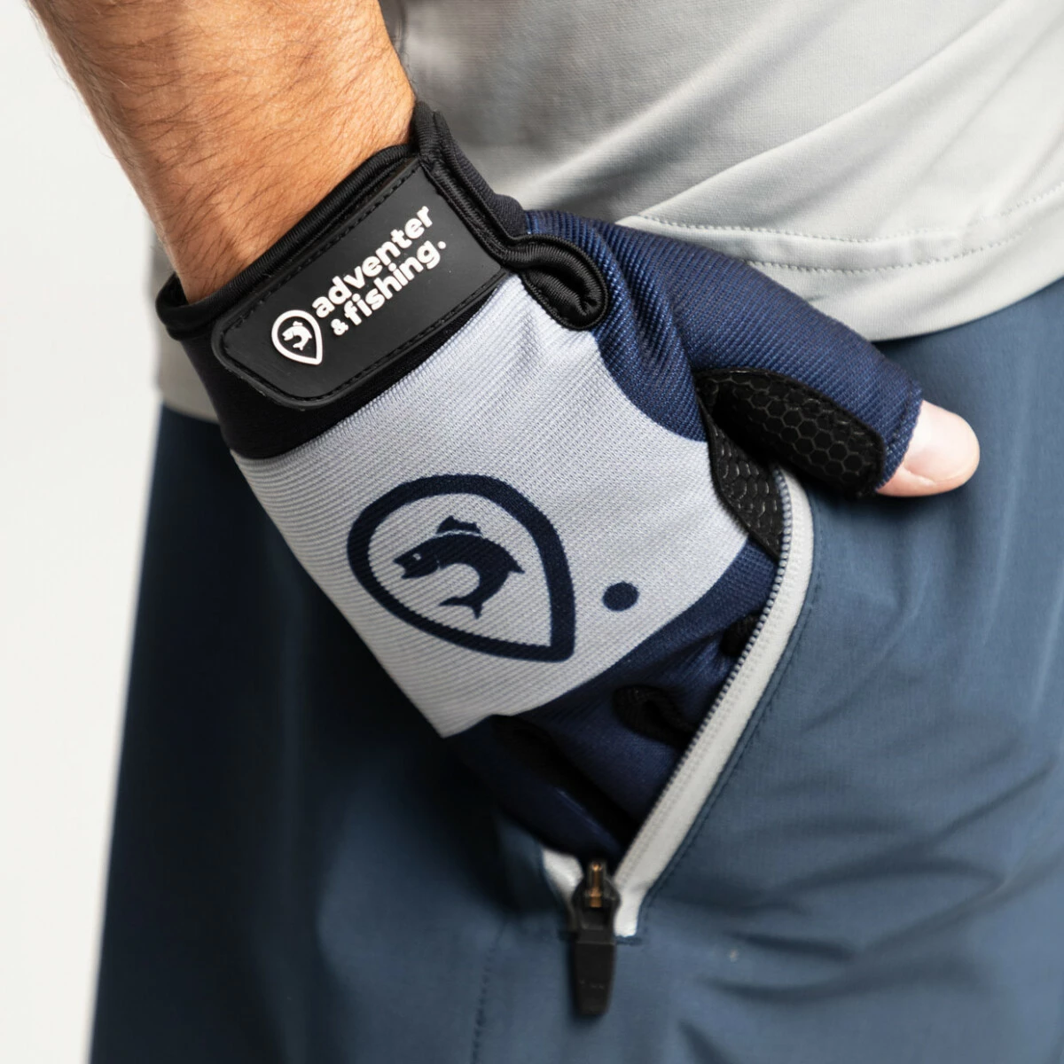 Pánské rybářské rukavice v tmavomodré barvě Original Adventer. Nezbytný doplněk každého rybáře, zejména při lovu na moři. Rukavice jsou z pružného materiálu s ochrannou vrstvou proti slané vodě a protiskluzovým vyztužením na dlaních. Praktické zapínání na suchý zip na hřbetech rukou vám ulehčí jejich nasazení. Tato varianta rukavic má otevřené konečky prstů pro jejich maximální manévrovatelnost.