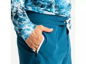 Pánské kraťasy Adventer & fishing v petrolejově modré barvě Petrol s šedým logem jsou určené především pro rybaření v teplých krajinách. Využijete je ale také při vodních či plážových sportech, nebo při procházkách v přírodě a ve městě. Ultralehký materiál je rychleschnoucí, pružný, vodoodpudivý a prodyšný. Šortky jsou vybaveny kapsou s voděodolným zipem a tkaničkami pro pohodlnou úpravu velikosti.