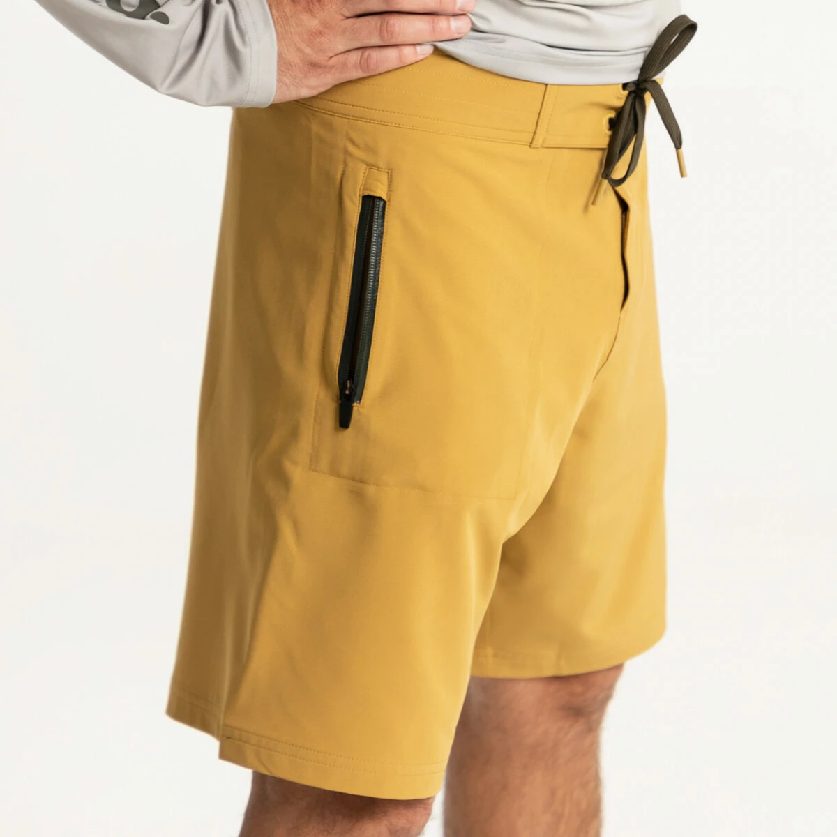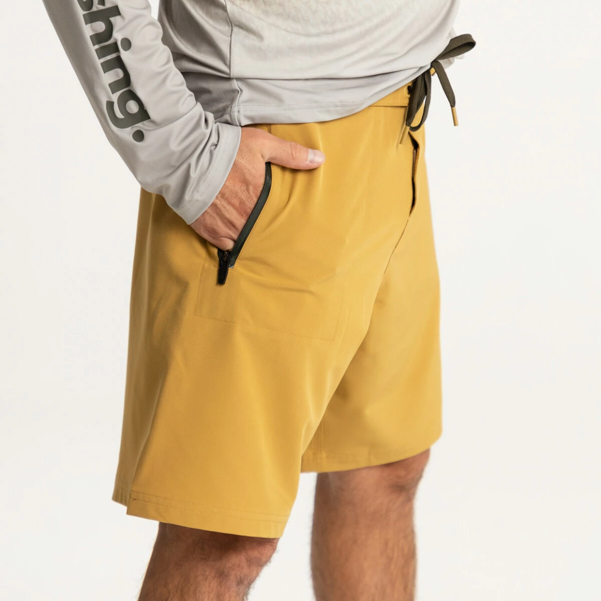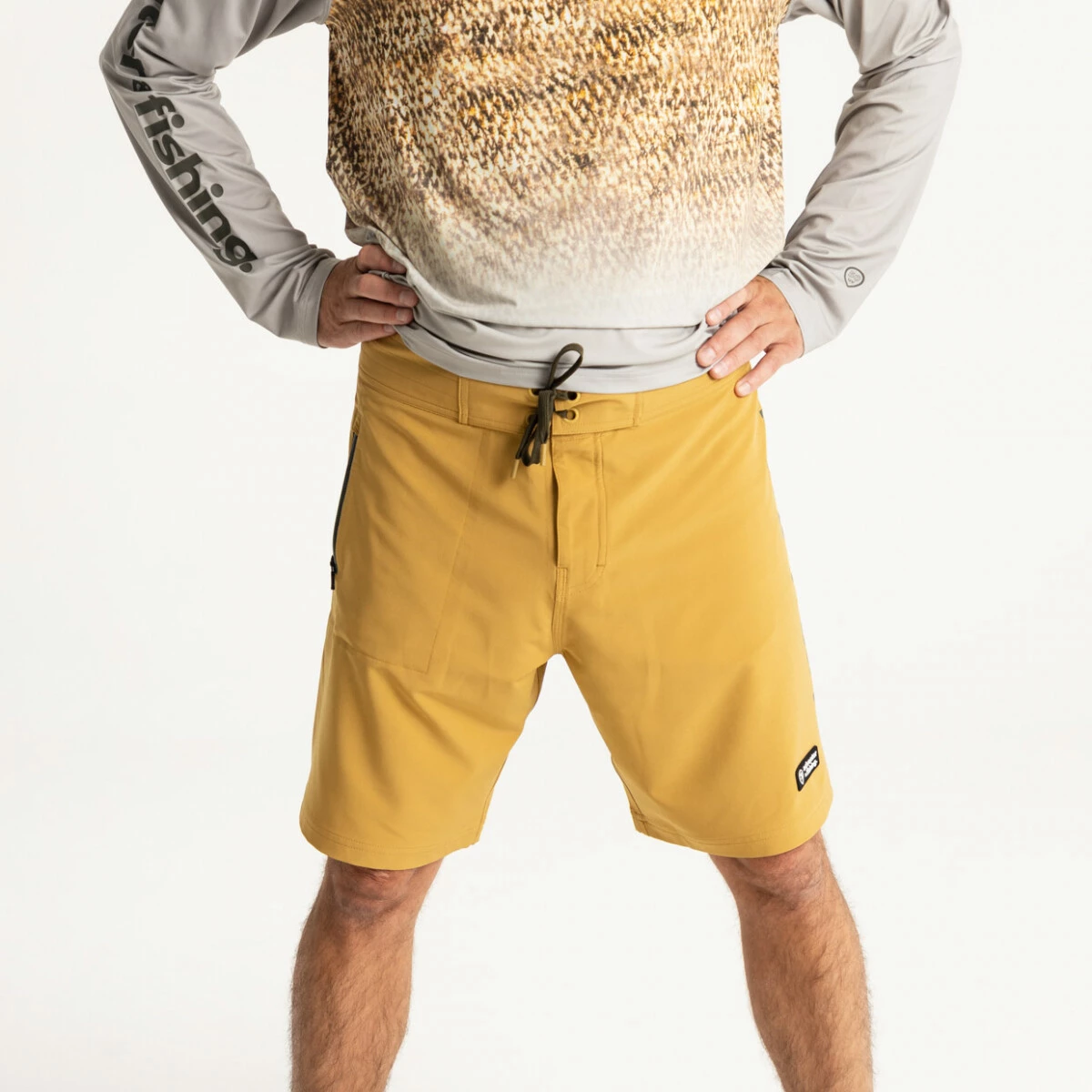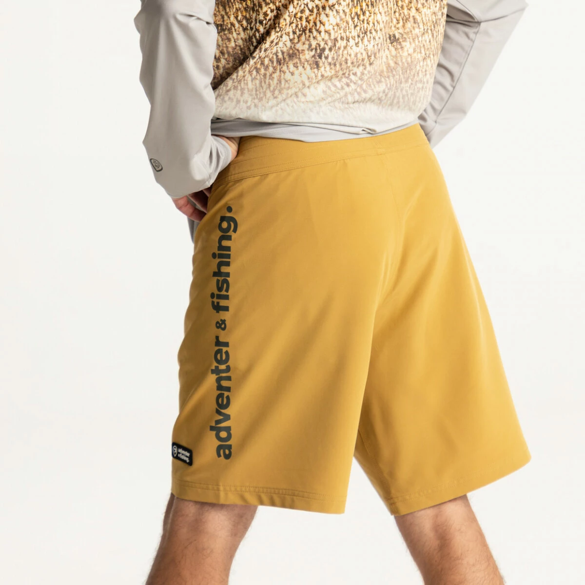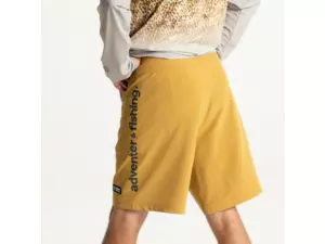 Pánské kraťasy Adventer & fishing v pískově hnědé barvě Sand s tmavě hnědým nápisem jsou určené především pro rybaření v teplých krajinách. Využijete je ale také při vodních či plážových sportech, nebo při procházkách v přírodě a ve městě. Ultralehký materiál je rychleschnoucí, pružný, vodoodpudivý a prodyšný. Šortky jsou vybaveny kapsou s voděodolným zipem a tkaničkami pro pohodlnou úpravu velikosti.