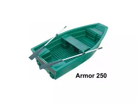 Plastový člun Armor 250 je malý plastový člun s řadou praktických a užitečných možností využití. Součástí člunu jsou kolečka pro snadnou manipulaci.