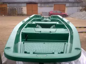 Základní výbava: 2x velká lavička, zesílený držák pro přívěsný motor, 3x úložný prostor s kryty, 2x vestavěná transportní kolečka,