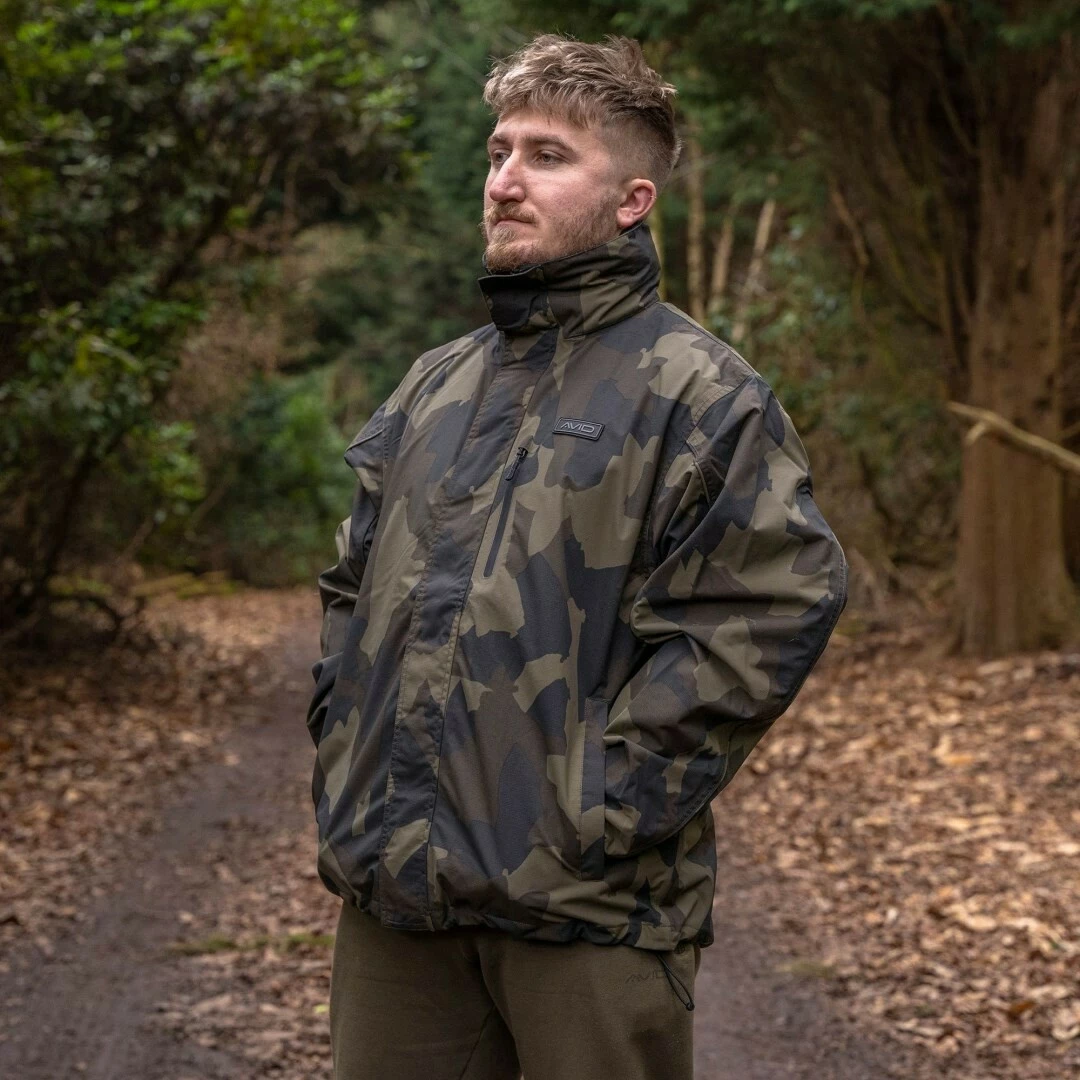 Lehká bunda Ripstop Camo Jacket v našem Avid camo vzoru z RipStop materiálu s udávaným vodním sloupcem 20 000 mm.