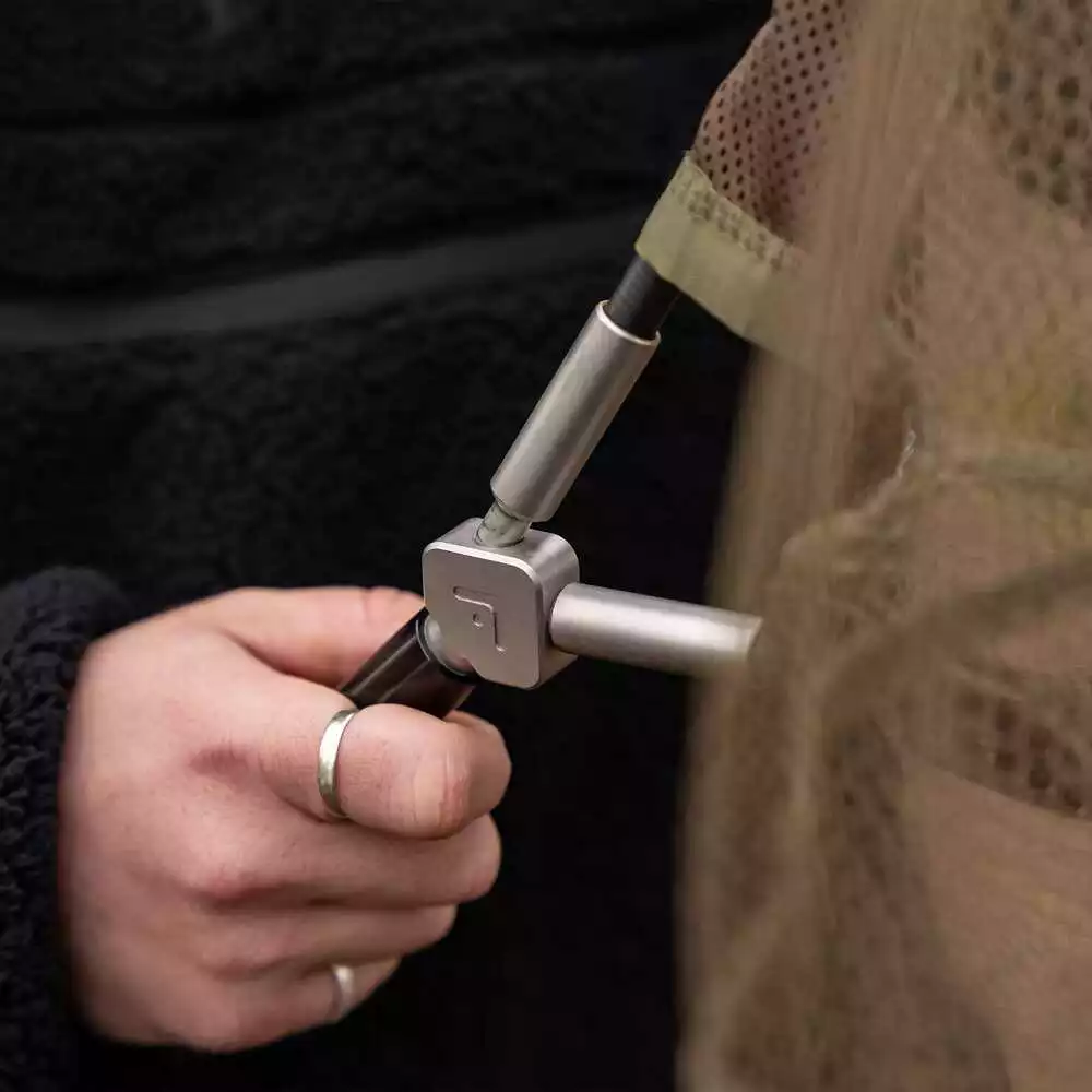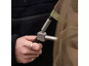 - Kovový hrot na konci tyče • Mimořádně odolný kovový podběrákový kříž