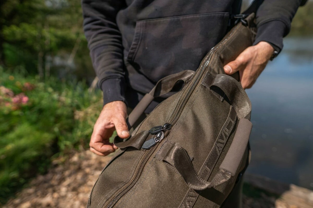 Pouzdro na dva pruty Compound Double Rod Sleeve je zpracováno v decentním elegantním designu ale tak, aby plně chránilo dva pruty s navijáky umístěny uvnitř. Pouzdro má pohodlný ramenní popruh a uvnitř dostatek místa i na největší navijáky a pruty s 50 mm očky. Dále jsou na pouzdře připevňovací popruhy/klipy pro připevnění pouzder Compound Pouch, ve kterých pak můžete mít vybavení potřebné k danému prutu, jako je třeba bižuterie, splávek apod.