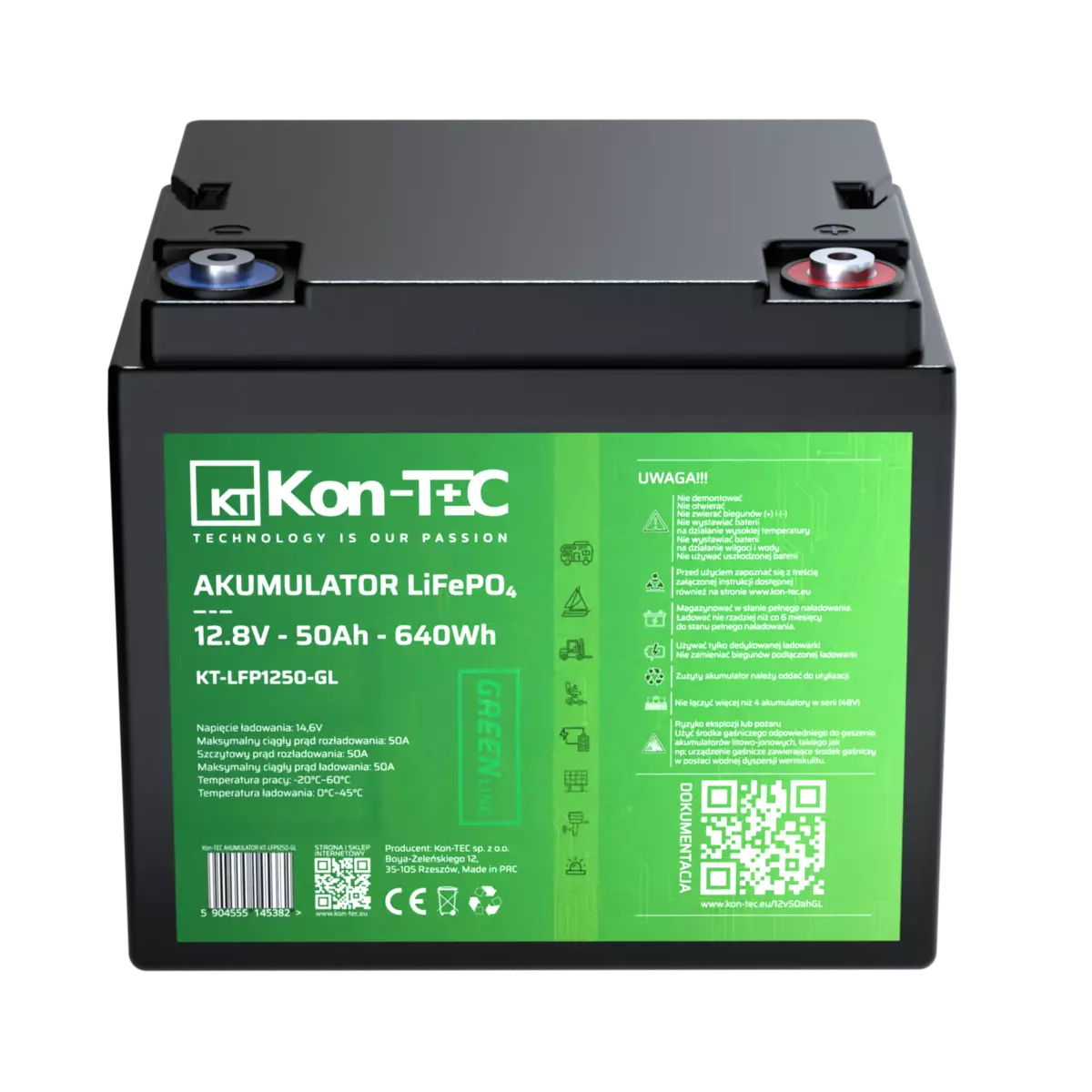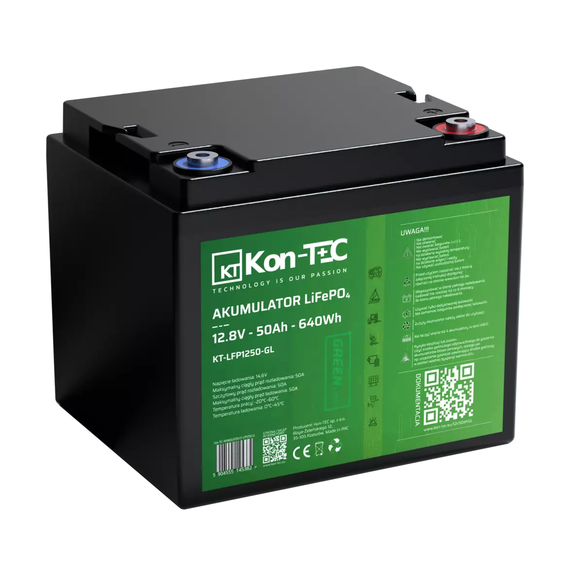 Baterie Kon-Tec KT-LFP1250-GL Green Line Lithium-železo-fosfátová LiFePO4 baterie 12V, 12,8V 50Ah, 640Wh Wireless BMS System