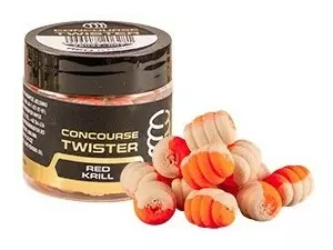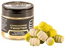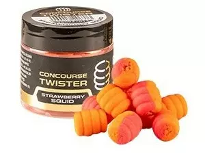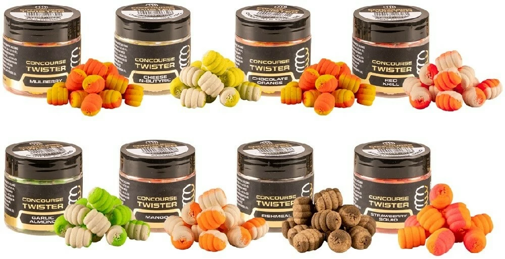 Nástrahy Concourse Twister díky svému symetrickému kruhovému tvaru představují pro ryby naprosto neznámý svět tvarů, který nabízí řadu variací. A kouzlo novinky, jak všichni víme, spočívá v dramatickém nárůstu úlovků! Nástrahy jsou z výroby dlouhé 10 mm a dodávají se ve dvoubarevném provedení ve velmi výrazných, chytlavých a oblíbených příchutích čokoláda-pomeranč, moruša, mango, rybí moučka, sýr-kyselina máslová, jahoda-sépie, česnek-mandle a krill.