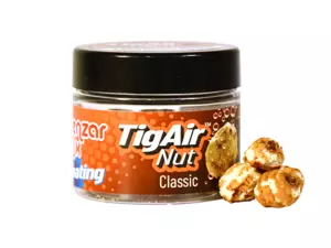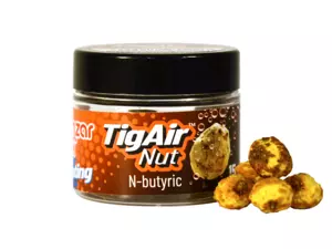 Jako výsledek víceletého vývojového procesu jsme vyvinuli technologii, při které jsme z tygřího ořechu extrahovali veškerou vlhkost a přeměnili ho na plovoucí. Ano, návnady TigAir Nut jsou 100% plovoucí. V souladu s tím jejich tvar a chuť naprosto přinášejí to, co bychom od tygřích ořechů očekávali, přesto máme v rukou návnadu, která je barevná, ochucená a PLAVÁ! Přirozená návnada vybavená charakteristikami těch nejprofesionálnějších metodických hafterů – to je TigAir Nut.