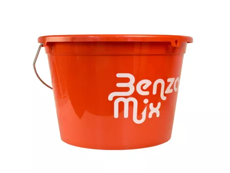 Nejjednodušším způsobem je použití míchacího kýble, v tomto případě 18litrové varianty, masivní plastová konstrukce, s dřevěným držadlem a pevným kovovým ramenem.