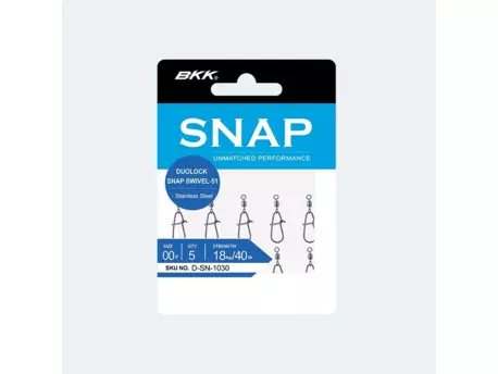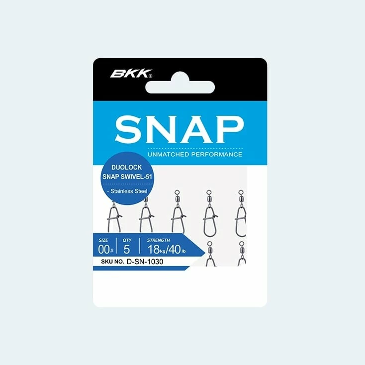 Karabinka s obratlíkem BKK Duolock Snap Swivel-51 obsahuje naši originální karabinku Duolock Snap a hladce se otáčející nerezový obratlík, který eliminuje kroucení šňůry. Díky síle nerezové oceli je i malý obratlík vybaven velkou sílou a odolá tak i velkým predátorům.