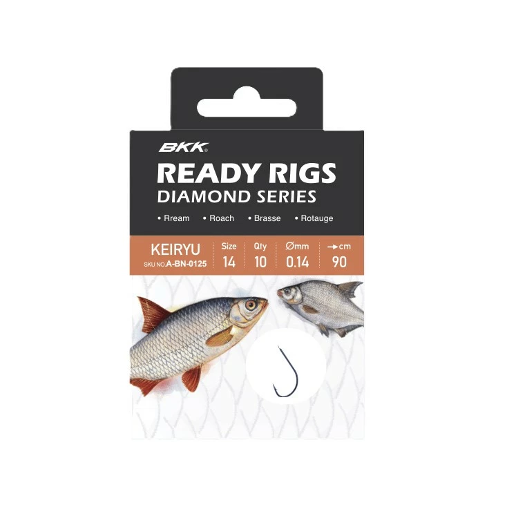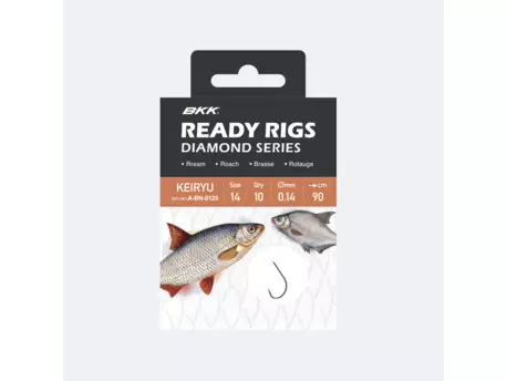 Tyto hotové návazce obsahují háčky série Diamond navázané na vlasci o průměru od 0,10 mm do 0,26 mm. Všechny návazce jsou dlouhé 70 cm a jsou zakončeny smyčkou, abyste je mohli snadno spojit s kmenovým vlascem. Navázaný háček Keiryu Diamond je vhodný například pro chytání plotic, perlínů a cejnů.