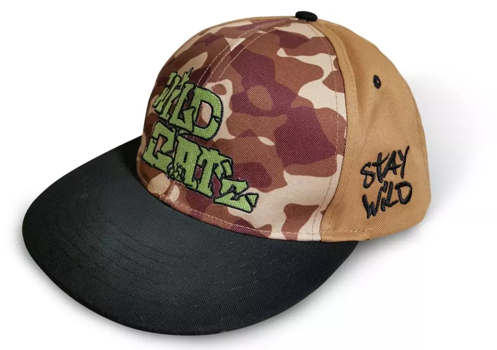 Rapperská kšiltovka v hnědém kamuflážovém provedení s nastavením velikosti. V kamuflážovém vzoru se opět odráží náš známý a populární Wild Cat’z design.