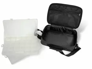 Taška přes rameno na přívlač pro aktivní rybáře obsahuje dva plastové boxy. Další info