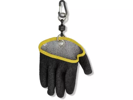 Speciální sumcová vylovovací rukavice z robustního gumového materiálu s magnetickým klipem a fixační karabinou pro upevnění na lodi. Další info