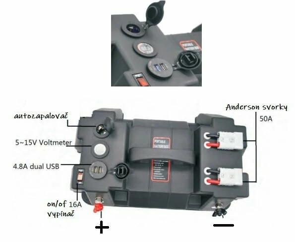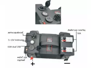 Bateriový box luxy s autozapalovači, USB a anderson konektory k lodím a člunům.