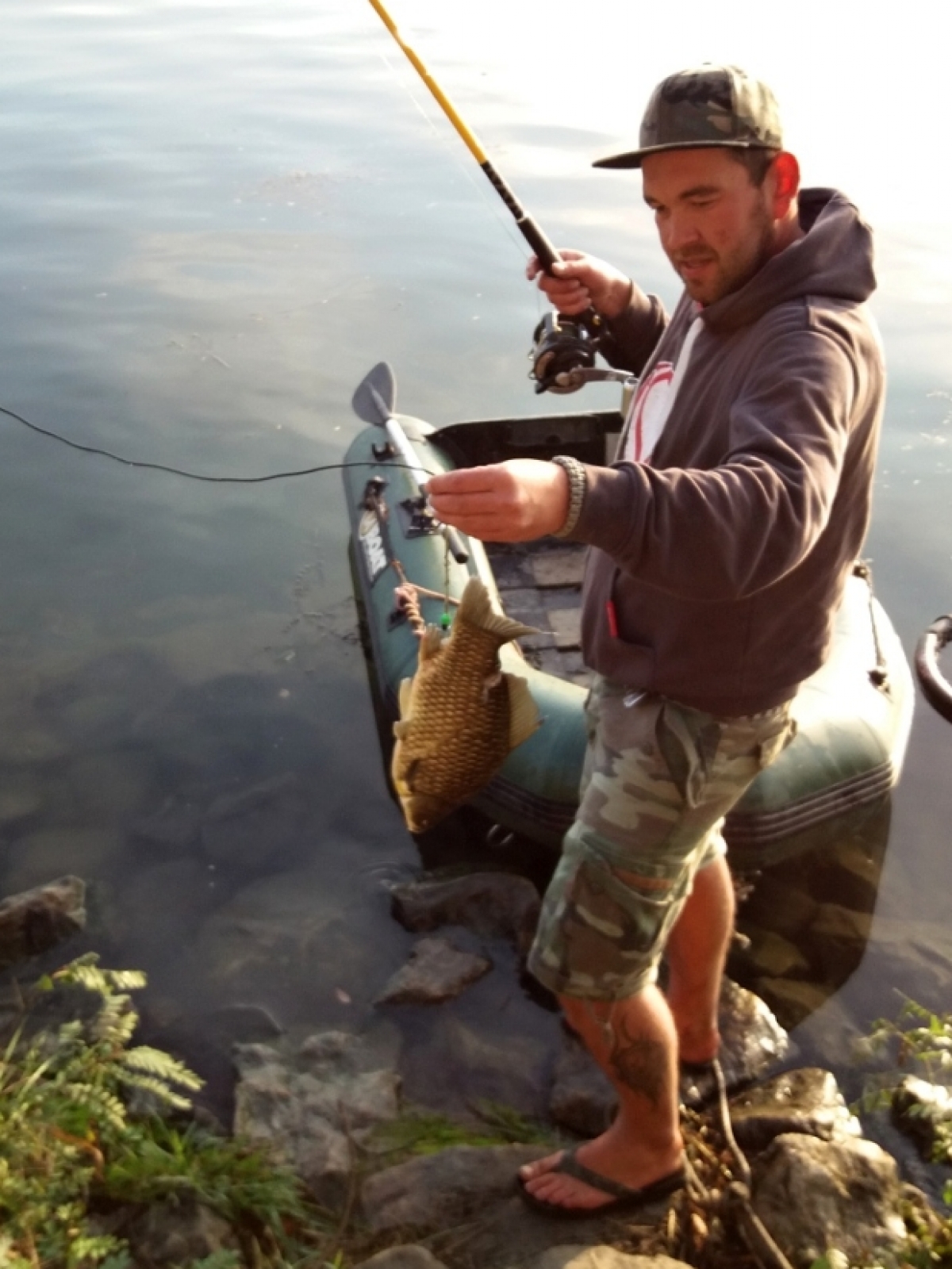 Po příjezdu do Francie jsme dokoupili ještě pár potřebných věcí a pomalu se blížili k vodě, kde na nás čekal náš průvodce Ivoš se člunem. Po krátké debatě jsme začali nakládat čluny a odpluli na místo, kde jsme chytali.