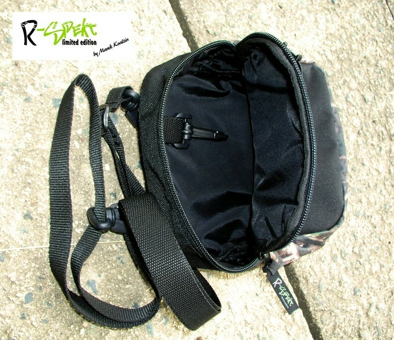 Brašnička na doklady R-SPEKT limited edition by Marek Kvaltín tvoří špičkový designový doplněk pro všechny rybáře, kteří chtějí být vidět i mimo vody, např. ve městě. Je ideální pro umístění potřebných každodenních drobností jako je peněženka, mobil, kapesníčky, tužka apod. Uvnitř brašny je navíc našita praktická karabina sloužící např. pro bezpečné připnutí klíčů.