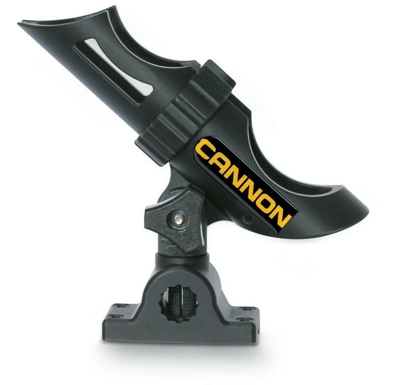 Cannon Rod Holder - nový, volitelně otočný a sklopný držák prutů. Je vodný pro smekací navijáky i multiplikátory, bezpečnostní otočná pojistka zajistí prut proti nežádoucímu vyklouznutí z držáku. Spodní část je možné přišroubovat k lodi vertikálně i horizontálně. Výborný pomocník pro troling.