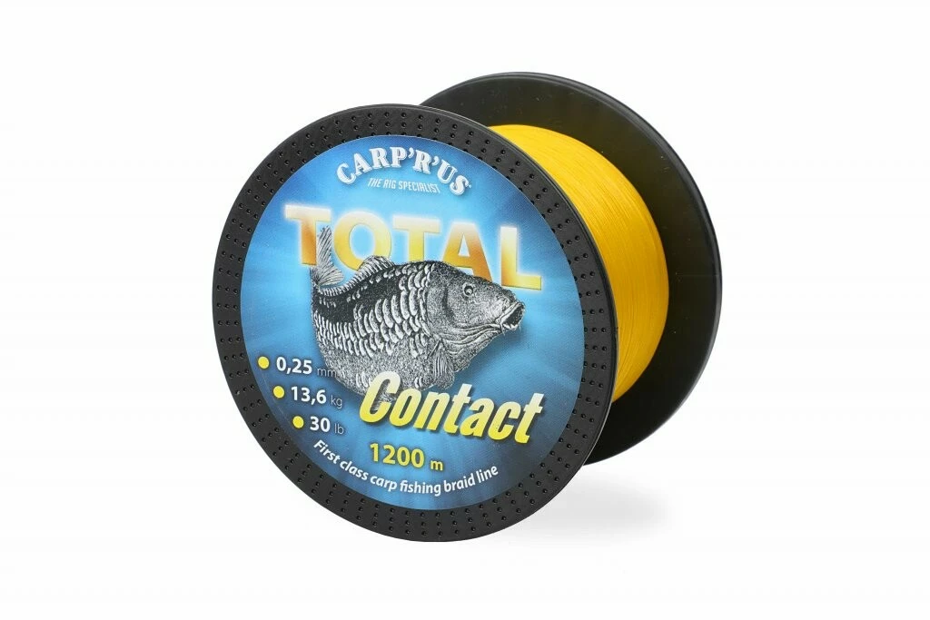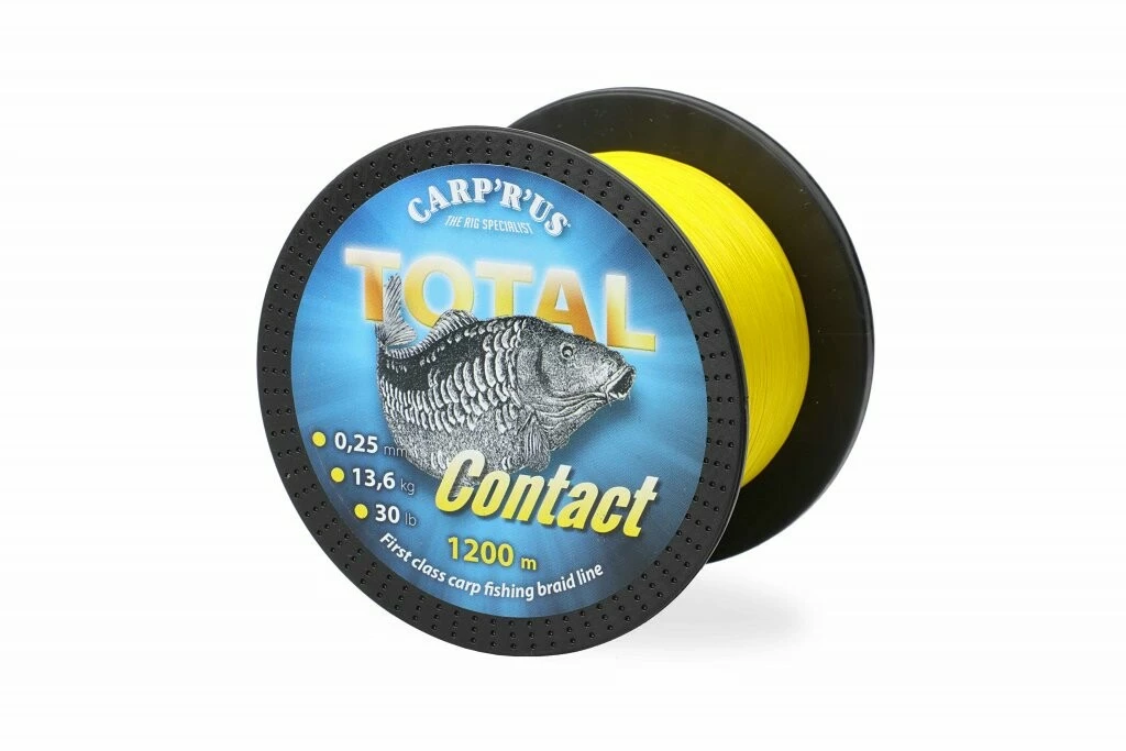 Skvostná, pletená šňůra Total Contact je speciálně navržena pro ty nejnáročnější podmínky, které můžou u vody nastat. Pletená šňůra má výborné vlastnosti – je precizně splétaná, má oválný průměr a díky speciální, povrchový úpravě je neobyčejně měkká. Tenký průměr, vysoká pevnost a speciální technologie výroby, díky kterým se šňůra lehce vznáší ve vodním sloupci a nezapadá mezi kameny, řasy nebo vázky na dně. Je perfektní pro lov ve velkých vzdálenostech, při nahazování nebo jako šňůra pro Spod a Marker. Díky skvěle viditelné, žluté barvě budete mít přehled, kde leží Vaše montáže i během těch nejtemnějších nocích. Total Contact je dostupný na špulkách po 300m nebo jako 1200m návin. Podle našich zkušeností vydrží šňůra 3 až 6 sezon, v závislosti na způsobu a intenzitě používání.