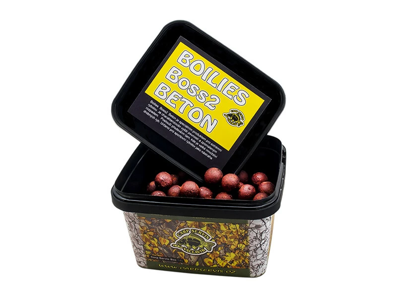 Produktová řada Boss2 Beton je specialitou, která vznikla díky zájmu rybářů, kteří loví na vodách s intenzivním atakem drobných ryb. Ty z běžného boilies udělají v krátkém čase hrášek a nakonec jej zcela udolají.Boilies Boss2 Beton je přesně tím, co pomůže podobné situace vyřešit. Složením se jedná o nástrahu tvrdě masového původu, jež obsahuje 50 % živočišných komponentů, které toto boilies jasně staví do role nutriční bomby. Díky značně pevnější konstrukci je i částečně omezeno uvolňování drobných částeček z povrchu a tím se omezuje záběrovost od menších kaprů. Díky těmto vlastnostem může být čekání na záběr o trošku delší, ale zato se můžeme s touto nástrahou dočkat trofejních úlovků i na vodách s osádkou menších ryb. Toto boilies mohou s úspěchem použít i ti rybáři, kteří chtějí svou montáž ponechat mnoho hodin bez přehození a vynutit si tak záběr od nedůvěřivých kaprů. Výrobce: CSV