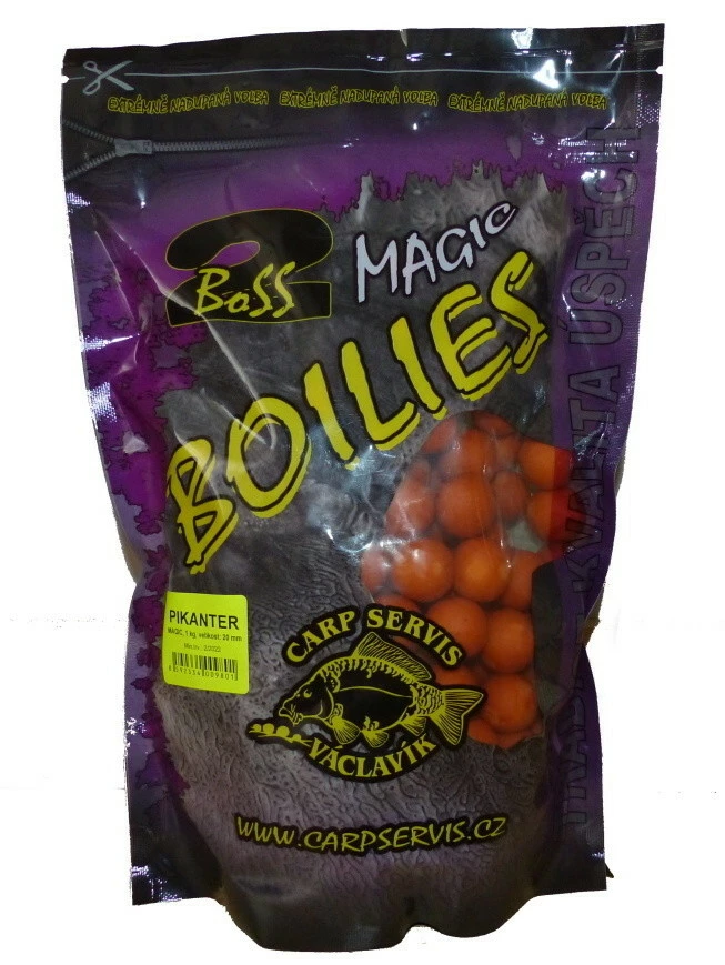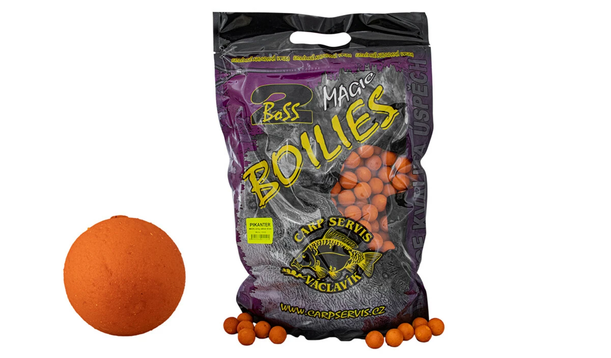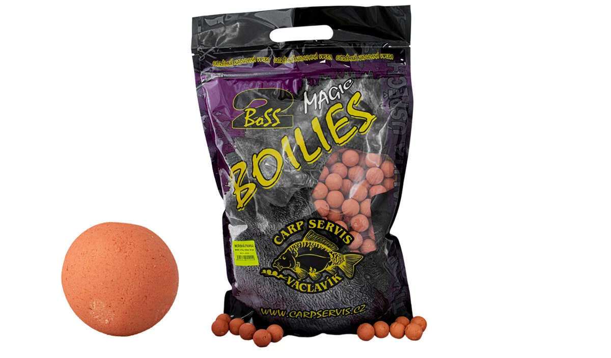 Přestože tento typ boilies na první pohled budí dojem jednoduchého složení, opak je pravdou. Hlavním cílem u této nástrahy bylo vyrobit boilies výrazné barvy a pronikavého aroma se zachováním maximální atraktivity. Těmto atributům se však složitě dostává, pokud většina všech důležitých složek kvalitního boilies je tmavé barvy. Použili jsme zde naši novou složku na bázi enzymaticky upravených živočišných bílkovin, která barevně nedegraduje nástrahu, a přitom kaprům báječně chutná. V řadě Boss2 Magic máme příchuť Slunečnice, Pikanter a Mořská panna. Slunečnice je žluté barvy a velmi pronikavé sladké příchuti. Pikanter je oranžový s kořeněně masovou vůní, což zaujme každého staršího kapra a Mořská panna je růžová - kuličky jsou sladké příchuti.