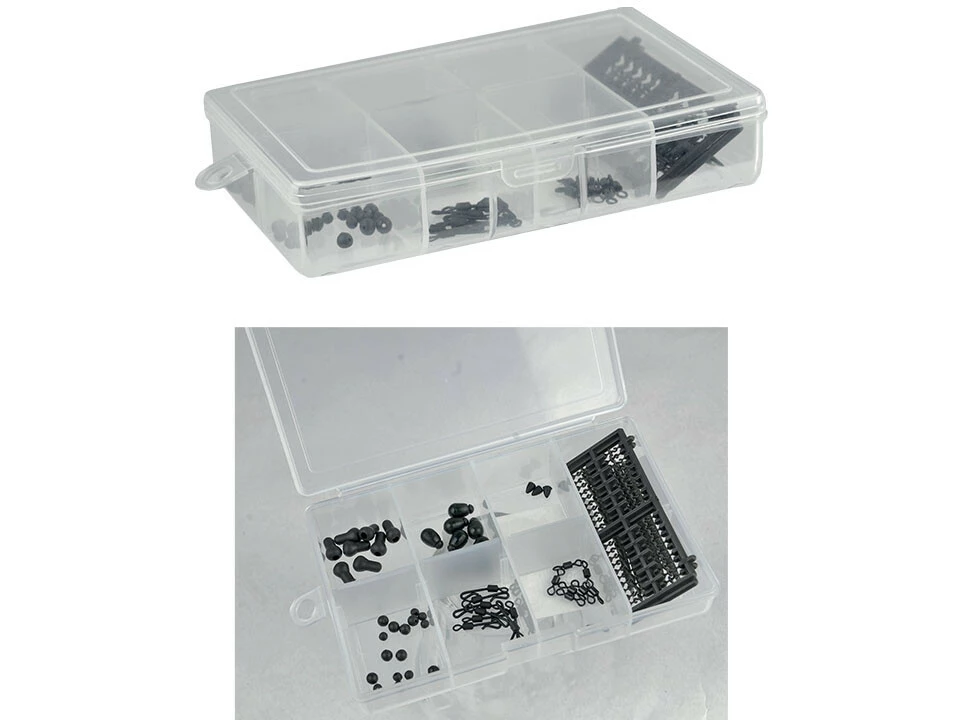 Set sestavený pro feederový a method feederový rybolov. Obsahuje všechny důležité drobnosti na montáže. Obsah: ► 5 ks hadiček na ochranu uzlů, 54 mm, tmavozelené, měkké ► 8 ks tulipánových zarážek, zelené ► 8 ks obratlíků, velikost 12, černé ► 8 ks rychloklipů s obratlíkem, velikost 7 ► 8 ks zarážek, 9 mm ► 16 ks stoperů, 4x3 mm, šedé ► 8 ks zarážkových kuliček, 0,3 mm, zelené ► 8 ks zarážkových kuliček, 0,4 mm, zelené