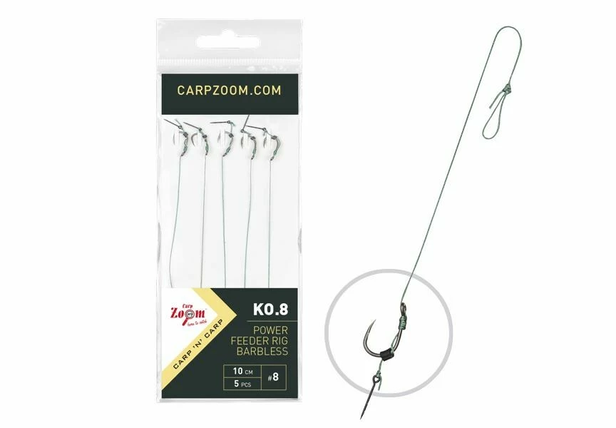 Carp Zoom Návazec FC Power Feeder Rig KO.8 - 5 ks/10 cm/0,18mm/vel.8