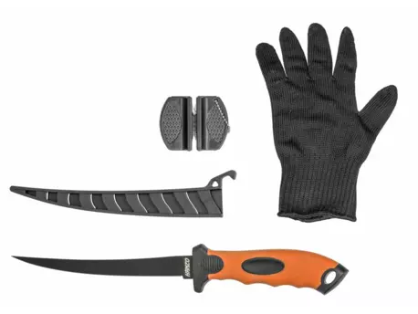 Jedná se o sadu složenou z filetovacího nože, brousku na nože a rukavice odolné proti proříznutí. Extra ostrá čepel z nerezavějící oceli je flexibilní a dostatečně dlouhá i pro filetování větších ryb. Bezpečné uložení nože zajišťuje plastové pouzdro s klipem, který zabraňuje vyklouznutí nože. Bezpečnost těch méně zkušených, při práci v kuchyni je zaručena rukavicí odolnou proti proříznutí. - Délka čepele: 17,5 cm - Délka rukojeti: 13 cm Výrobce: Carp Zoom