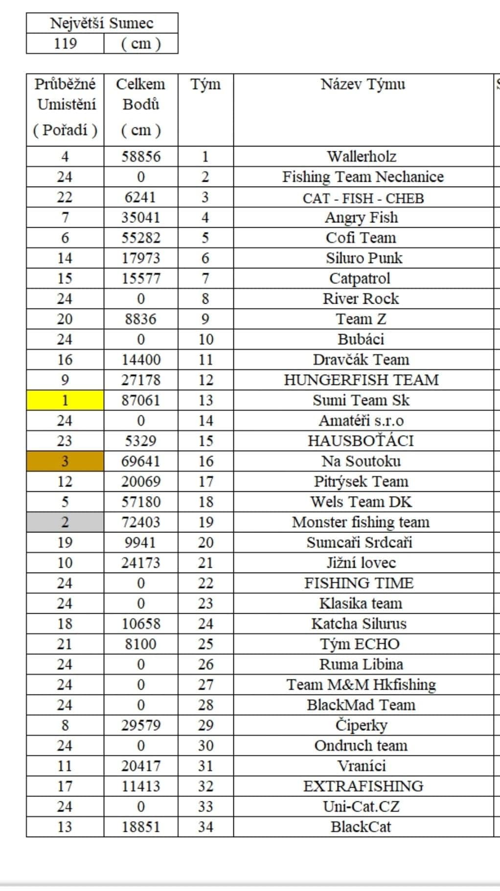 Závod už pomalu končí, pár vteřin do konce a bum!!! Naši sumcoví kolegové posílají fotku sumíka a posouvají nás z 2. místa na 3. ![]()