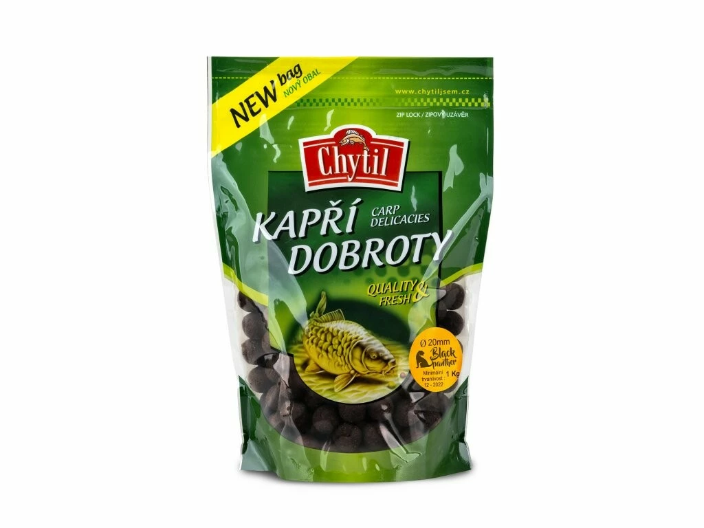 Samotná směs vyniká svojí hrubší strukturou, obsah tříděných rybích mouček je rovných 50%, další část tvoří kvalitní pepř, který dodává boilie svoje selektivní účinky. Množství pepře není nijak přehnané, ale ve výsledku s boilie vystupuju dostatečně. Zbytek suché směsi tvoří objemové suroviny, mléčné proteiny, mořská řasa a vaječiny. Kuličku dotváří skvělá šťavnatá broskvová esence a oblíbený esenciální olej černý pepř.
