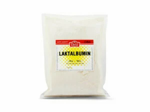Laktalbumin - syrovátkový protein, zlepšuje zpracovatelnost, pojivost a finální tvrdost kuliček po uvaření. Řeší např. praskání kuliček při krmení kobrou. Další info