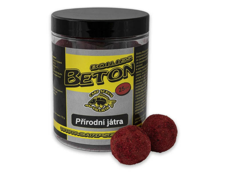Speciální produkt pro extrémní rybolov, se zaměřením na velké úlovky. Je charakterizován vyšší pevností a zpomaleným rozpadem. Tyto aspekty přinášejí nižší počet záběrů, ale zvyšují hmotnostní průměr ulovených ryb. Poslouží především tam, kde je velké množství drobných ryb, které potřebujete odradit, aby se zvýšila šance na trofejní úlovek. Boilies Beton je ve dvou fázích zatraktivněn tak, aby cílené ryby v bezprostřední vzdálenosti vyprovokoval k záběru. Pro ideální výsledek, který očekáváte, doporučujeme střídmé dokrmování k tomuto druhu boilies. Výrobce: CSV