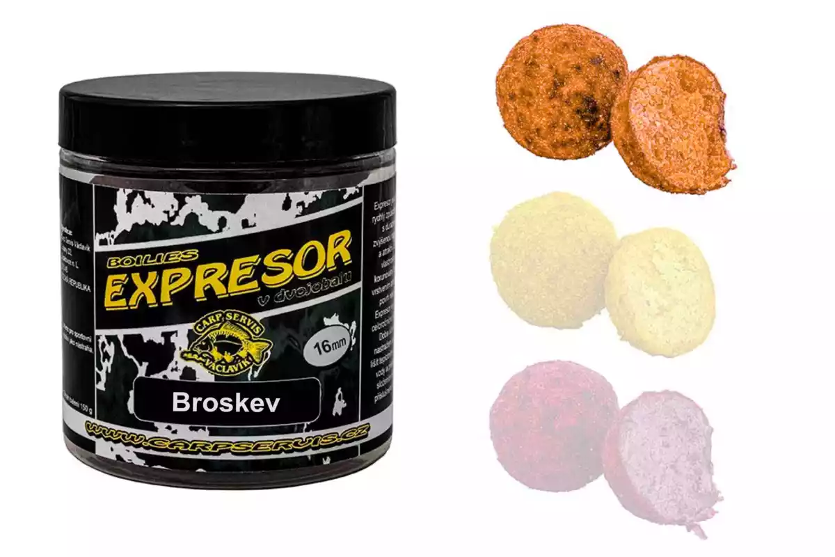 Klasické těžké boilies určené přímo k nastražení. Dle našich zvyklostí, je nástraha obohacena o dvě vrstvy atraktorů. První tekutá, druhá prášková. Ve výsledku, tato úprava, nástrahu značně zvýhodňuje, oproti klasickým boilies. Technika, která je u nás, pro tyto účely používána, má nemalou historii a dle každoročního navýšení zájmu o tyto typy boilies, lze usoudit, že jejich důvěru získává stále více rybářů. - Balení: 150 g - Průměr: 16 mm - Příchuť: Broskev Výrobce: CSV
