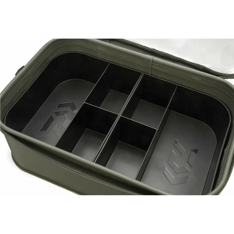 Voděodolná taška DAIWA Infinity EVA Tackle Manager. Obsahuej další 2 tašky s organizéry uvnitř. Velká voděodolná taška vyrobená z 2mm silného EVA materiálu. Robustní tuhé víko lze použít jako stoleček nebo například podložku pod návazce. Obě vnitřní kapsy, které jsou vyrobeny z tuhého EVA materiálu, jsou připevněny pomocí klipu k hlavní tašce a díky svému oddělení nabízejí prostor pro bižuterii, návazce, zátěže atd. Ve spodní části zůstává dostatek prostoru pro bezpečné uložení hlásičů apod Vlastnosti: • Druh rybolovu: Kaprařina, Přívlač