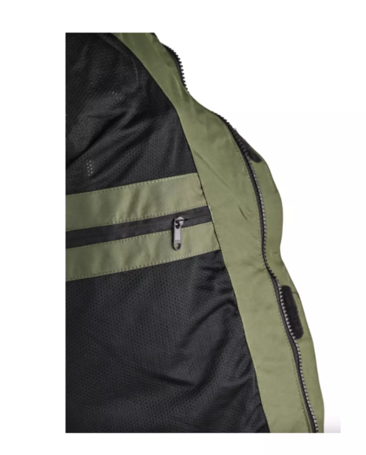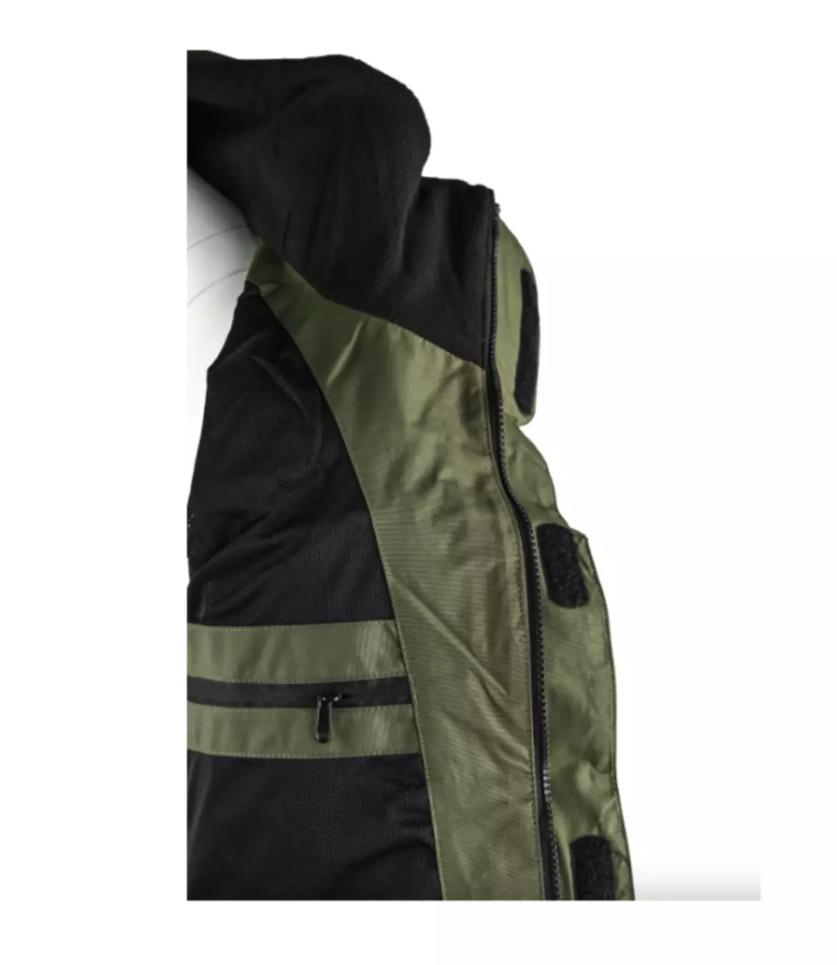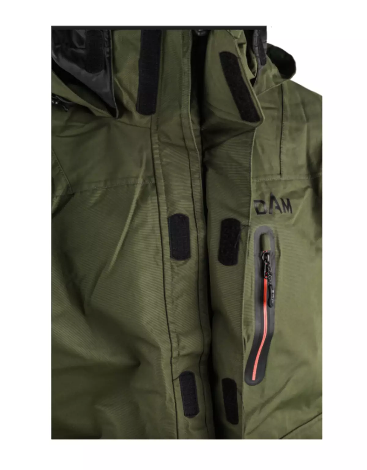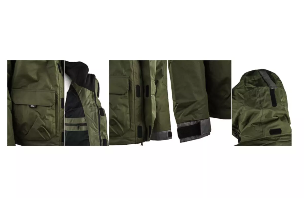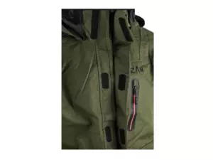 Bunda je vybavena dvěma velkými bočními kapsami na suchý zip a voděodolnou náprsní kapsou na zip.