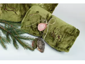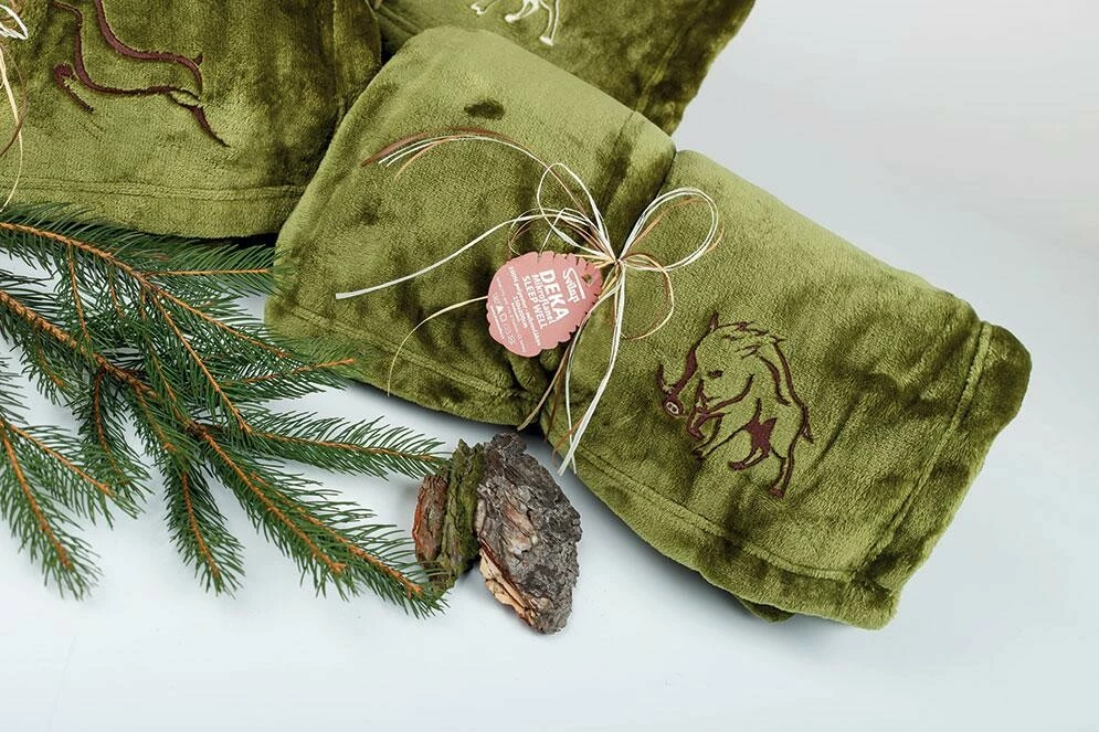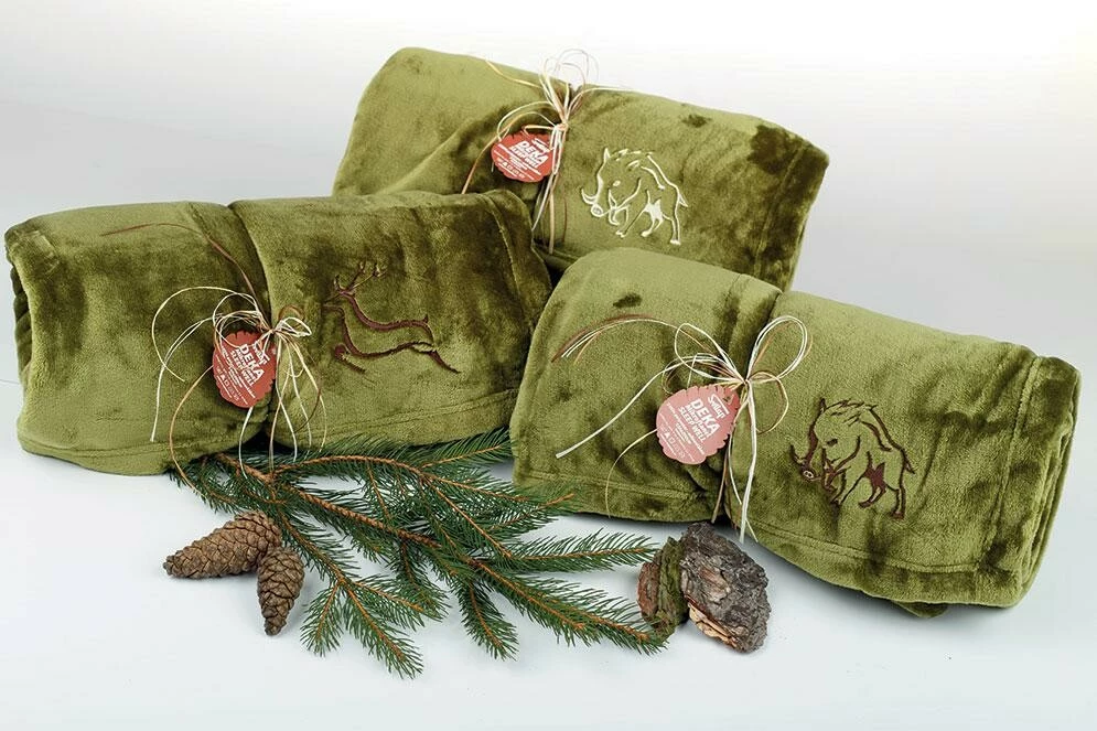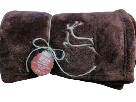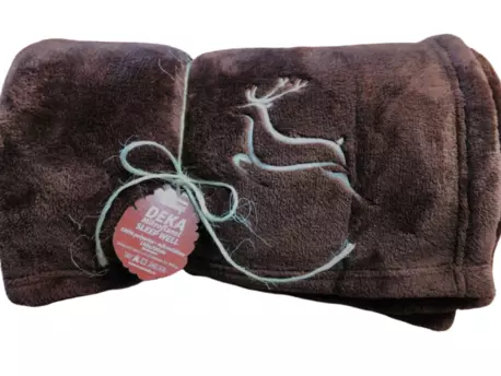 Deka z mikroflanelu SLEEP WELL HNĚDÁ -150x200cm, výšivka PRO MYSLIVCE - KANEC VÝPRODEJ