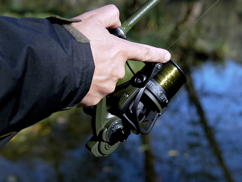 Kvalitní kovová rolnička a překlapěč ze silnějšího drátu přispívají ke zvýšené pevnosti a odolnosti navijáku. Štíhlá kovová klika je ukončena tmavým dřevěným madlem, které se výborně drží v ruce a dodává navijáku exkluzivní vzhled. AMOX je designován do matné zelené barvy v kombinaci s černou, které jsou doplněny lesklými částmi, zajímavými karbonovými prvky a efektními výřezy na těle navijáku.