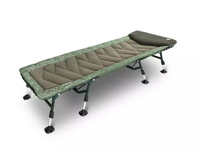 Všech 8 nohou je vybaveno robustními, flexibilními patkami, což jim umožňuje přizpůsobit se nerovnostem terénu. Pár nohou pod hlavou je navíc opatřen zajišťovacím mechanismem, což usnadňuje rozložení lehátka a zároveň zabraňuje nechtěnému sklápění či posunu.