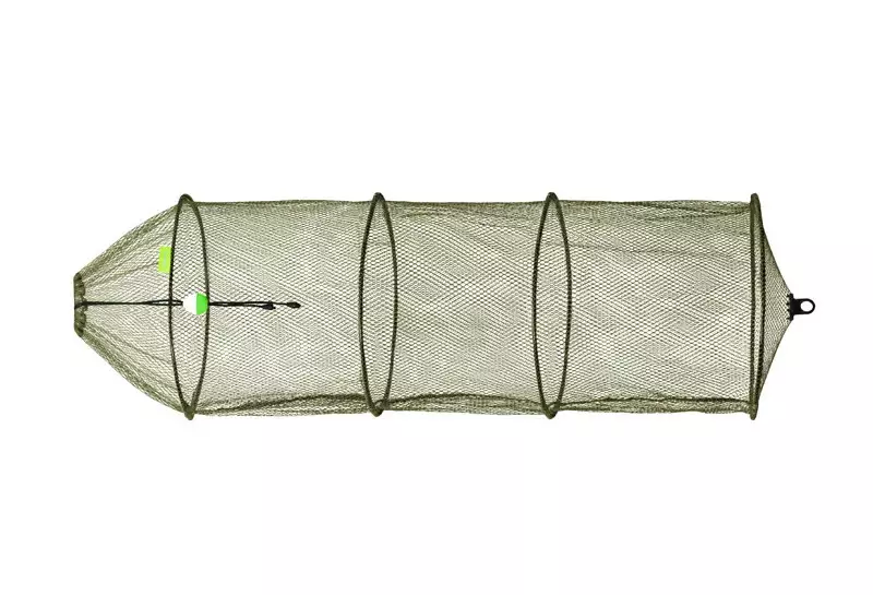 Pogumovaná síťka Delphin BASE-R v základním provedení, která je spolehlivým doplňkem mnoha rybářů. Její předností oproti klasické síťce je její rychlé schnutí, nezapáchá a je šetrná k úlovku. Slouží k bezpečnému přechovávání úlovků ve vodě. Díky očkům je zachováno proudění čerstvé vody v síťce, a tím pádem ponechání úlovku bez nežádoucího poškození. Samozřejmostí je plovák nacházející se na šňůrkách vrchní stahovací části. Spodní část je samozřejmě vybavena plastovým okem. Síťka je nabízena ve třech provedeních: 35×80, 40×100 a 40×120cm, kde první číslo zobrazuje průměr jednotlivých kruhů a druhé celkovou délku v centimetrech.