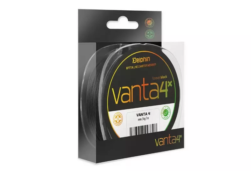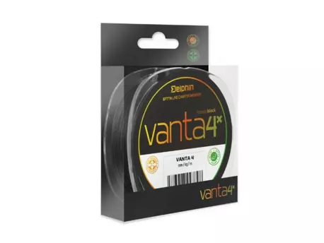 Výjimečná šňůra vyhotovená ze čtyř pevně pletených PE mikrovláken. Husté pletení do přesného kruhového průřezu a speciální povrchová úprava má za následek skvělé klouzání v očkách prutu. Jedním z největších benefitů šňůry VANTA je její barevná stálost. Je vyrobena z černého granulátu, čili nikdy neztratí svou barvu! Právě černá barva je v některých případech velmi efektivní, protože dobře kontrastuje s okolní vodou a rybář má přesný přehled, kde se šňůra a nástraha nacházejí. Má vynikající odolnost vůči oděru, kterou určitě ocení vláčkaři či milovníci feederu. Permanentní barevná stálost, odolnost vůči oděru a pevnost jsou hlavními benefity šňůry Delphin VANTA 4.